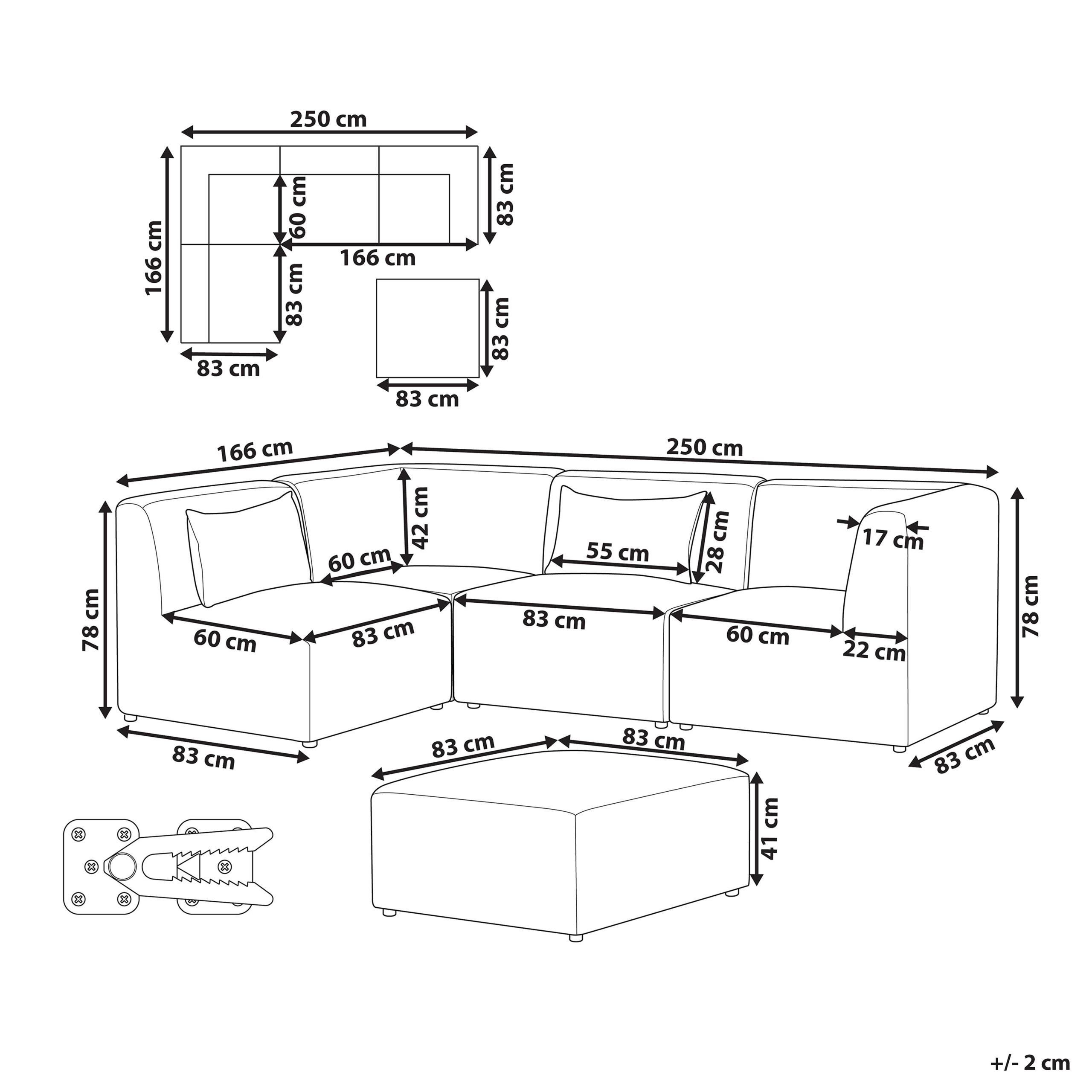 Ominaisuudet: Helposti napsautettavat liitosklipsit pitävät moduuliosat yhdessä, Voit koota moduuliosat haluamallasi tavalla, Rento istuma-asento, Moderni muotoilu, Sopii hyvin monenlaiseen kodin sisustukseen, Tyynynpäällisissä piilotetut saumat ja vetoketjut, Täysin verhoiltu