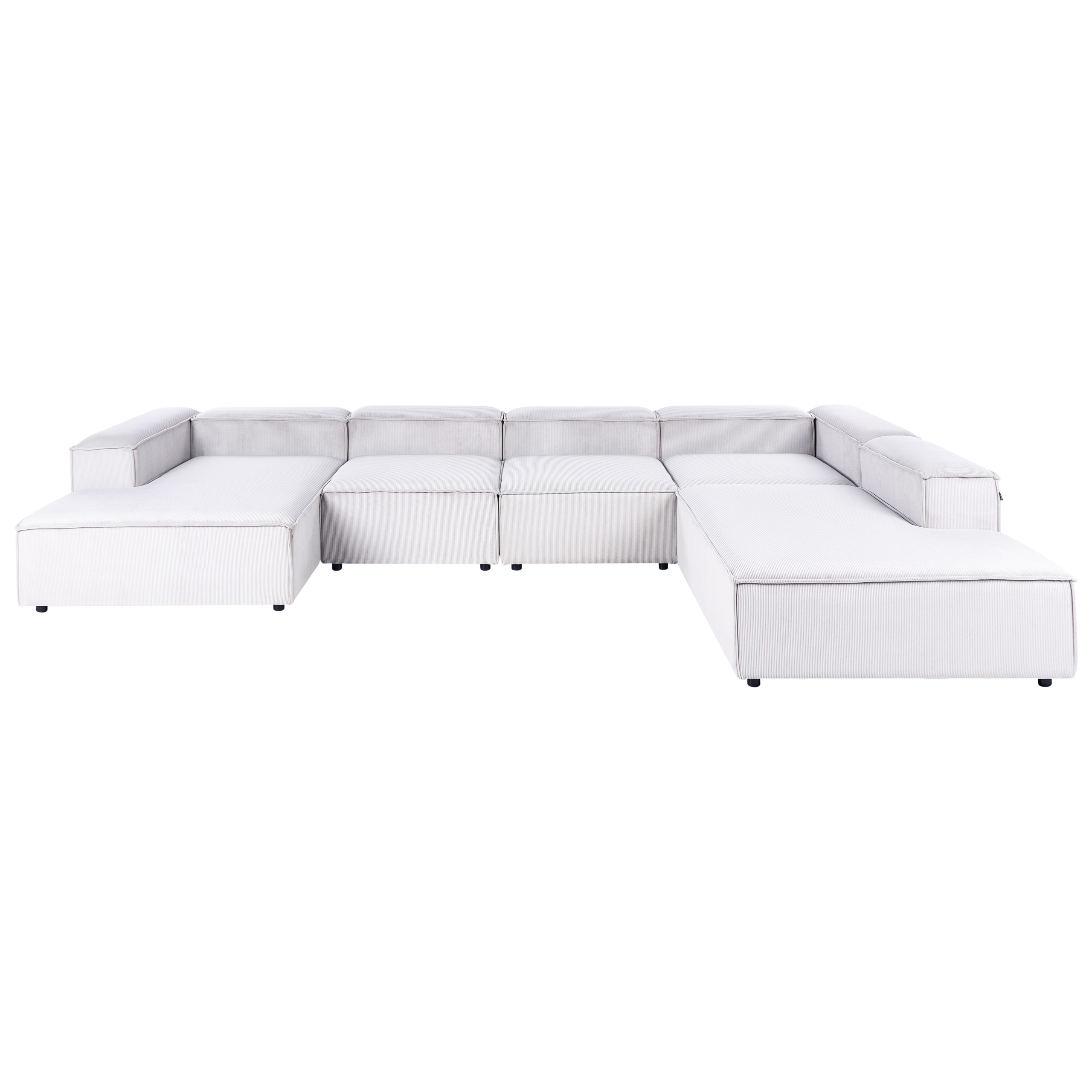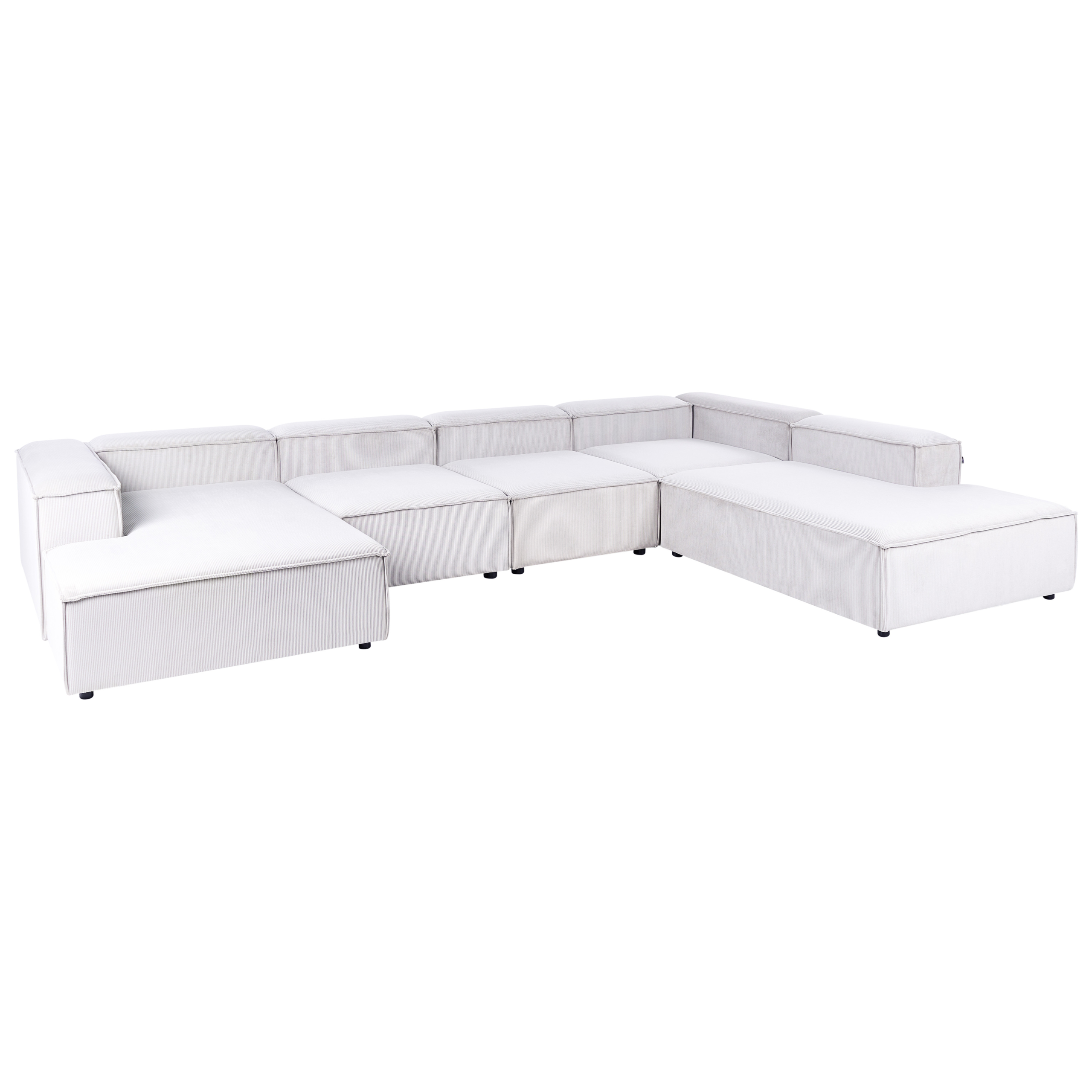 Moderni modulaarinen kulmasohva. Päivitä olohuoneen sisustusta ja tee sitä kodin tyylikkäin oleskelupaikka tällä moduulikulmasohvalla. Pehmeällä ja laadukkaalla vakosametilla verhoillussa kulmasohvassa on kestävä puurakenne ja tukevat mustat synteettiset jalat. Herttainen luonnonvalkoinen sävy saa sen sulautumaan täydellisesti mihin tahansa moderniin tai perinteiseen sisustukseen. Moduulisohva koostuu viidestä moduulielementistä, jotka voidaan asettaa yhteen tai erikseen ainutlaatuisten kokonaisuuksien luomiseksi.