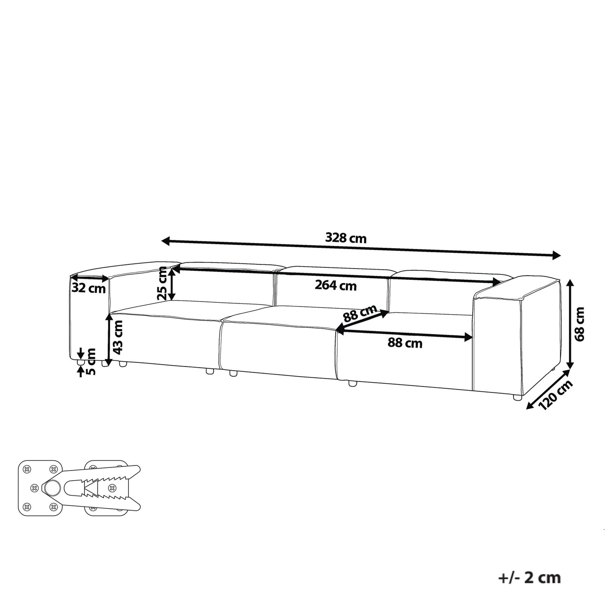 Ominaisuudet: Yhdistettävissä malliston muihin moduuliosiin, Helposti napsautettavat liitosklipsit pitävät moduuliosat yhdessä, Loistava paikka rentoutua, Sopii mihin tahansa sisustukseen, Korkealaatuiset materiaalit, Täysin verhoiltu