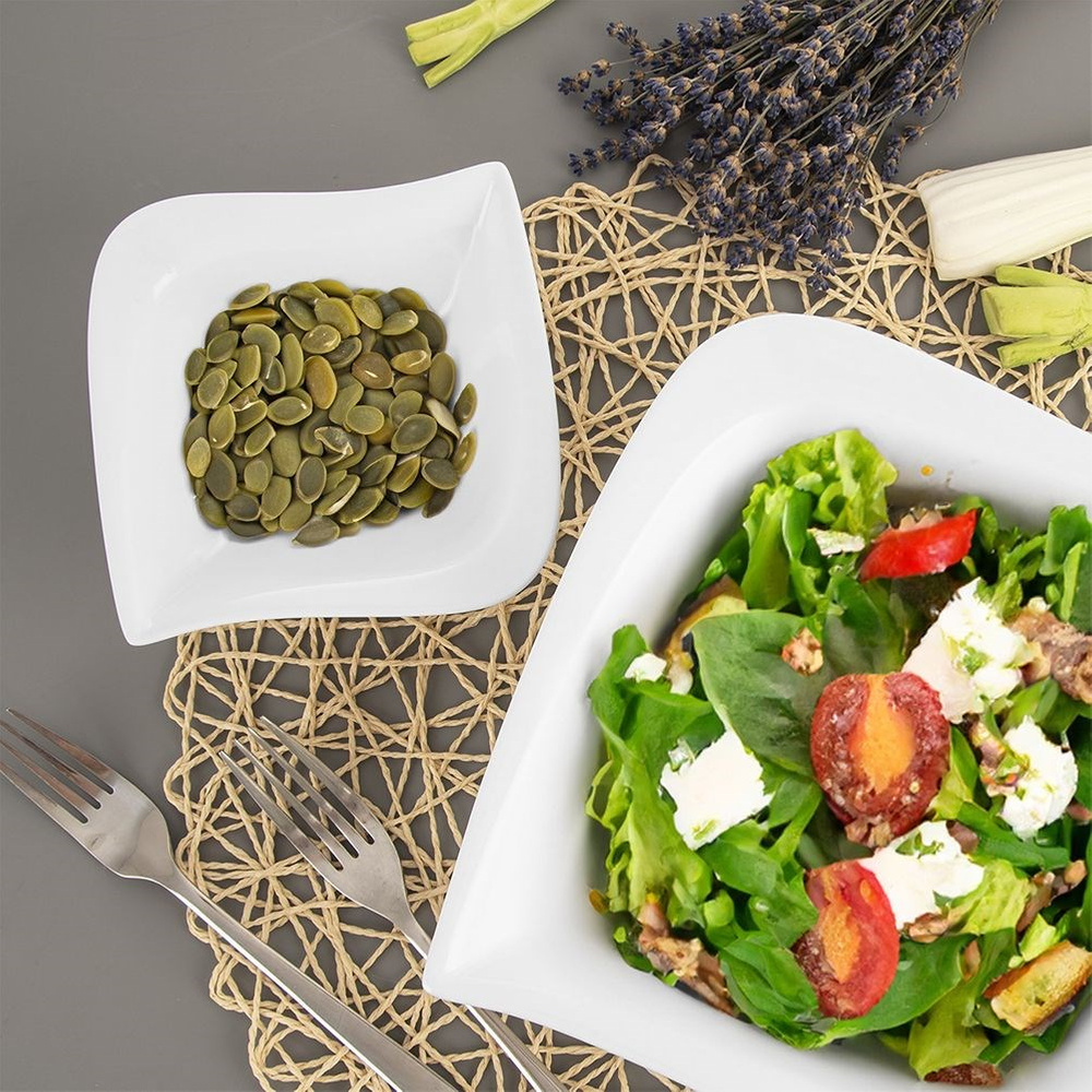 MODERNI MUOTOILU - Tyylikkään valkoinen. Kulhossa on elegantti, epäsäännöllinen neliön muoto ja kevyesti pyöristetyt reunat. Se näyttää kauniilta pöydällä muiden astioiden rinnalla.