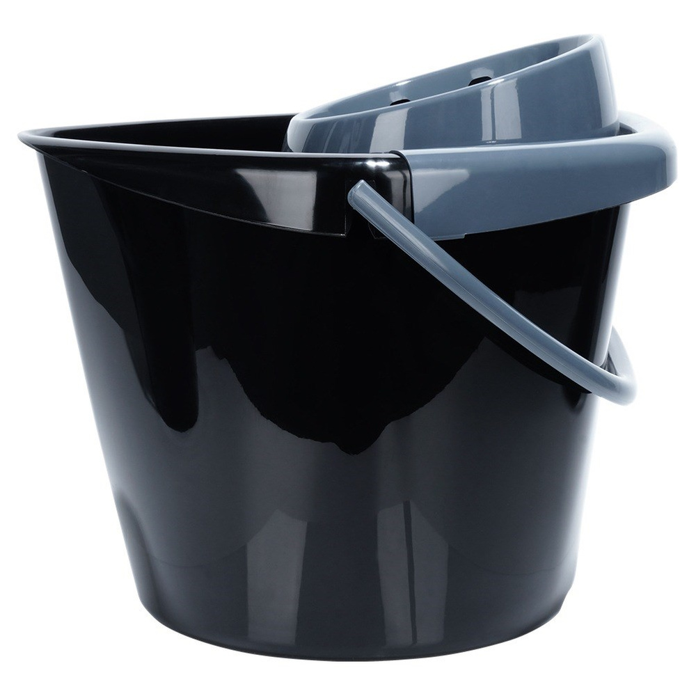 Moppiämpäri puristimella, muovia, musta, 14 l