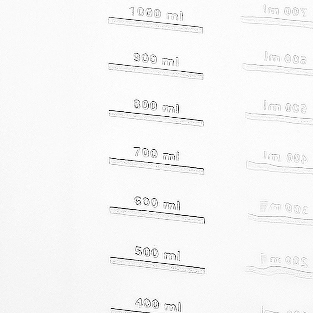 MUKAVA - Siinä on mukava kahva, joka on valmistettu valkoisesta muovista. Kahvan ansiosta kannua on helppo kantaa ja kaataa juoma. Kannun asteikko on 100-1000 ml, joten voit mitata oikean määrän nesteitä.
