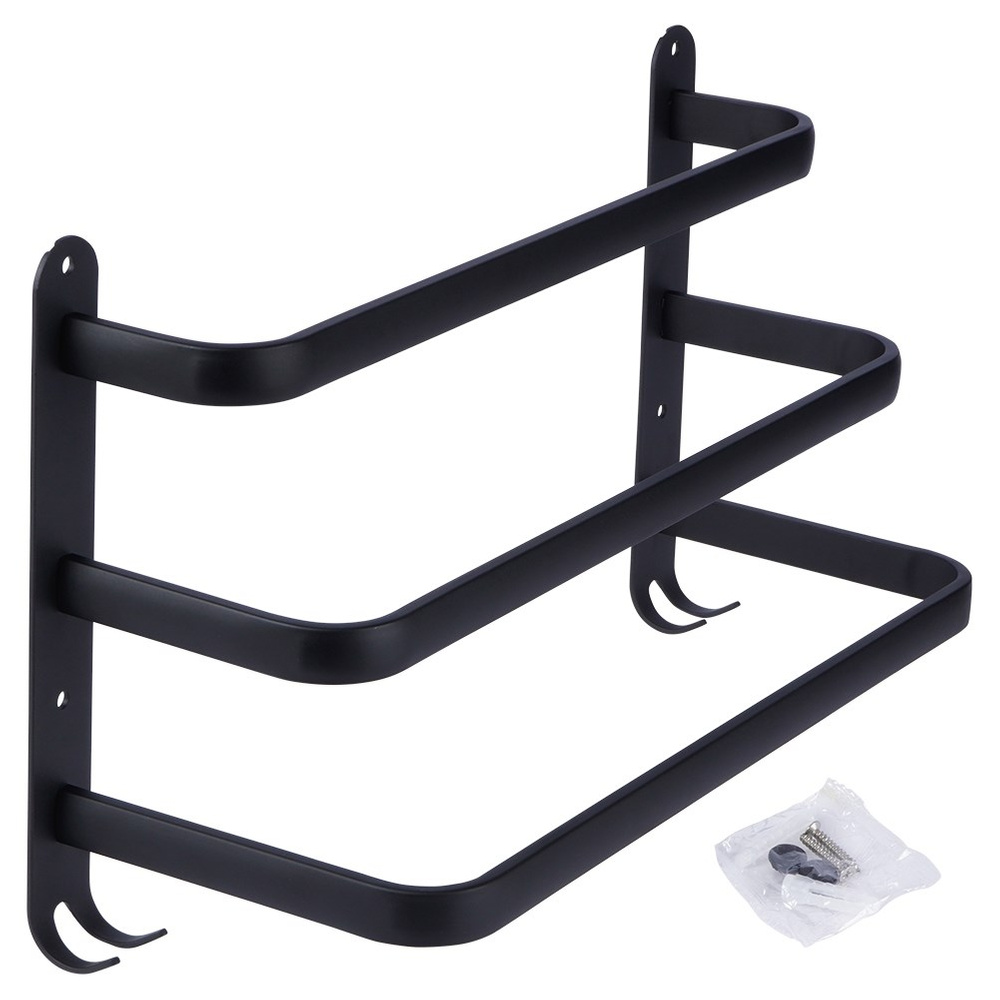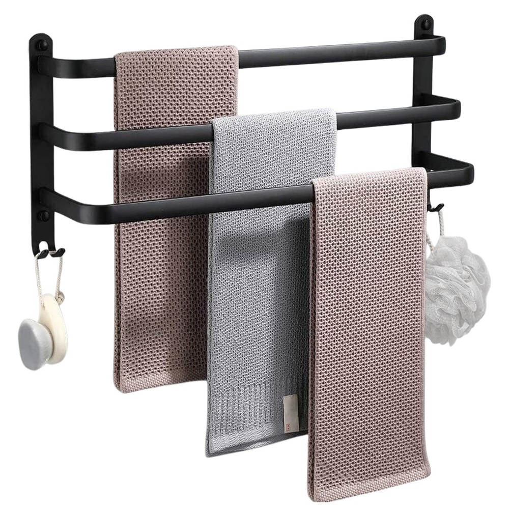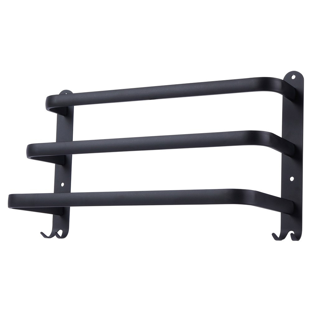 KOLMOISKEISET KOUKUT - Telineessä on kolme lokeroa, joihin voit kätevästi ripustaa pyyhkeitä. Pohjassa on neljä koukkua, joita voidaan käyttää lisäpaikkana pyyhkeiden tai kylpyhuonetarvikkeiden, kuten sienen, ripustamiseen.