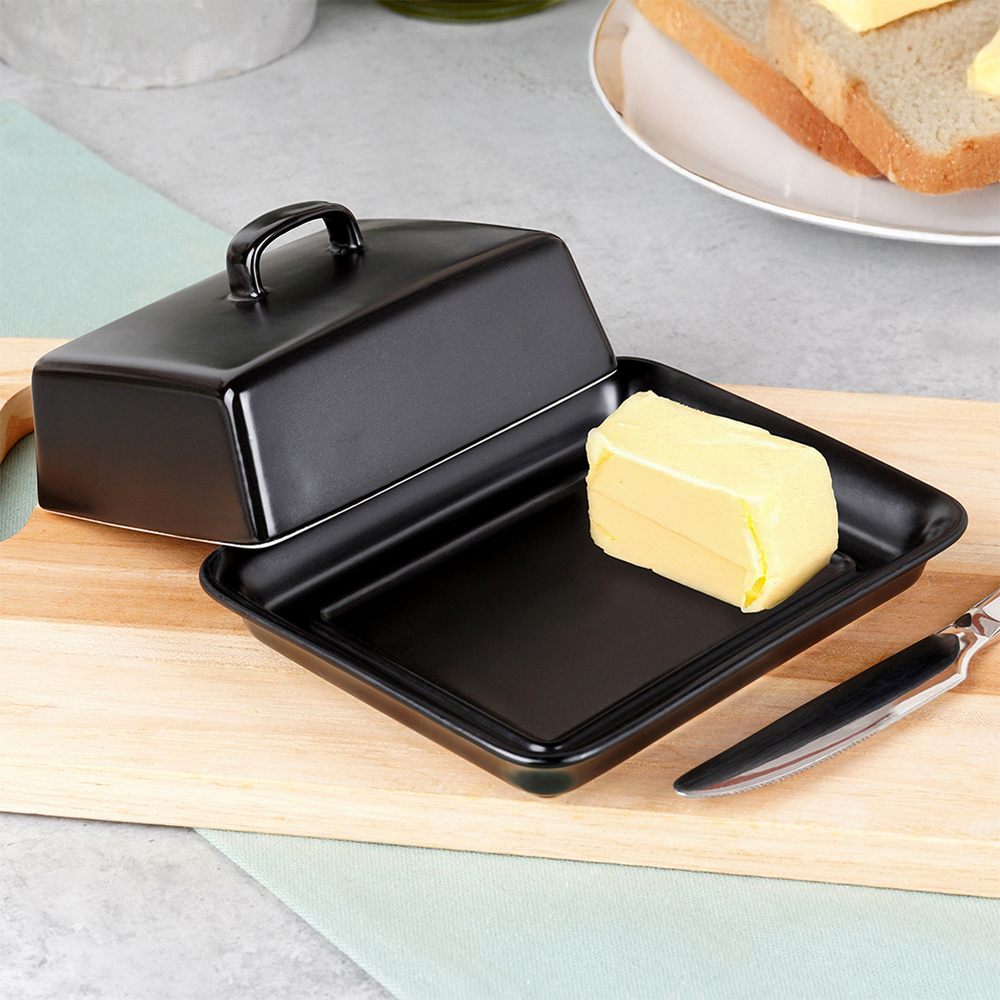Musta keraaminen voikuppi