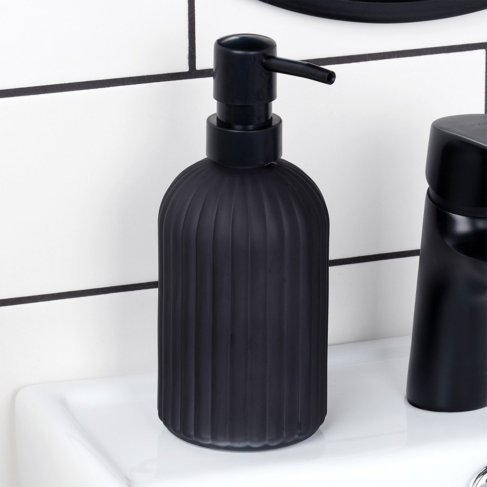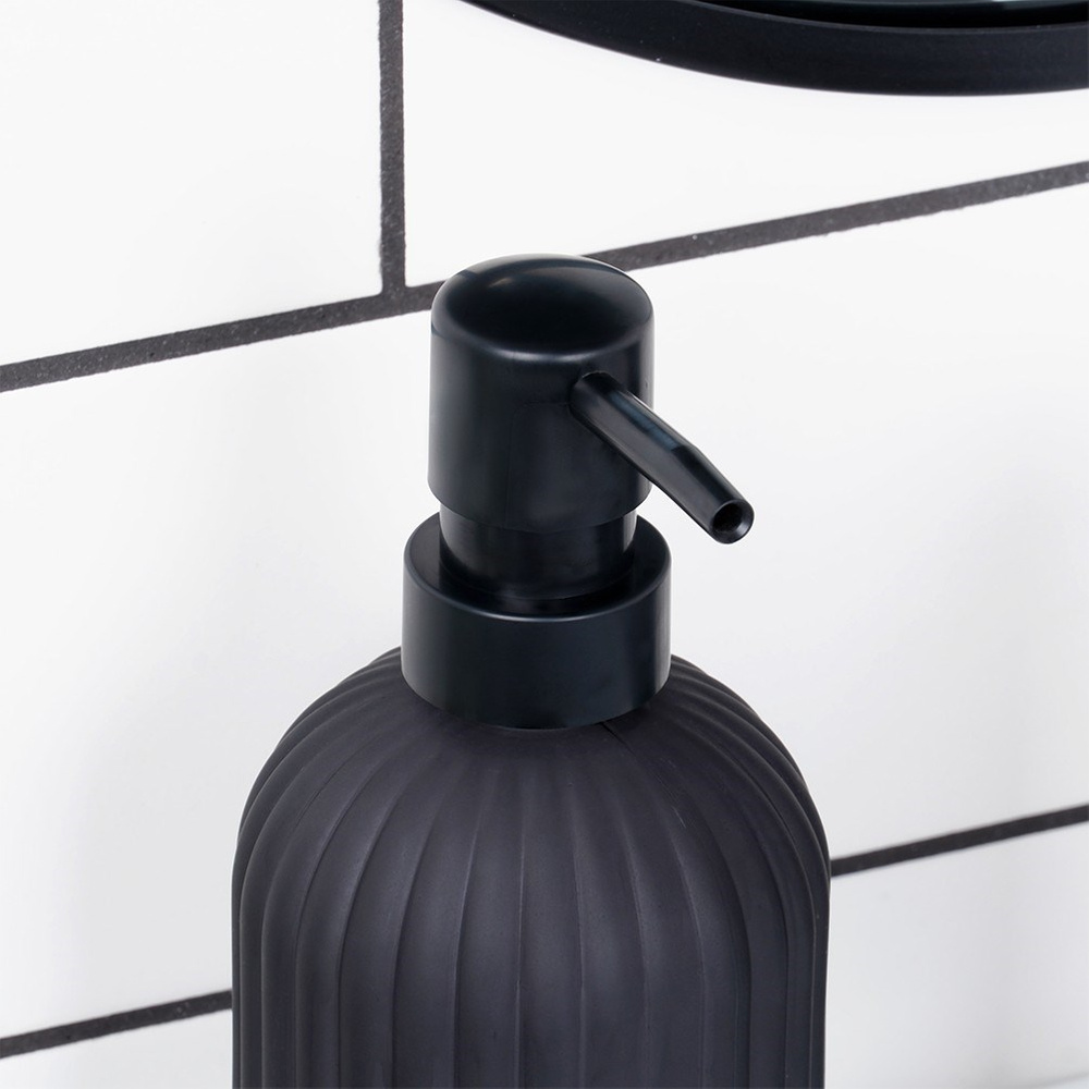 Annostelija nestemäiselle saippualle tai astianpesuaineelle. Käyttöön kylpyhuoneessa tai keittiössä. Annostelija näyttää erittäin tyylikkäältä ja on saatavana muodikkaassa mustassa värissä. Alkuperäinen Vilde-tuote. Valmistettu eurooppalaisten standardien mukaisesti.