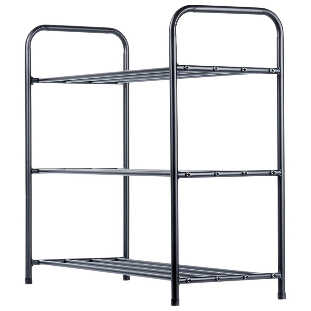 Käytännöllinen kenkäteline - Tässä kenkätelineessä voit säilyttää kenkiäsi kätevästi kolmella eri tasolla. Telineen mitat ovat 63 x 28 x 60 cm. Se auttaa hyödyntämään kodin tilan paremmin ja pitää kenkäsi järjestyksessä. Se sopii 9–12 kenkäparille kenkäsi koosta riippuen.