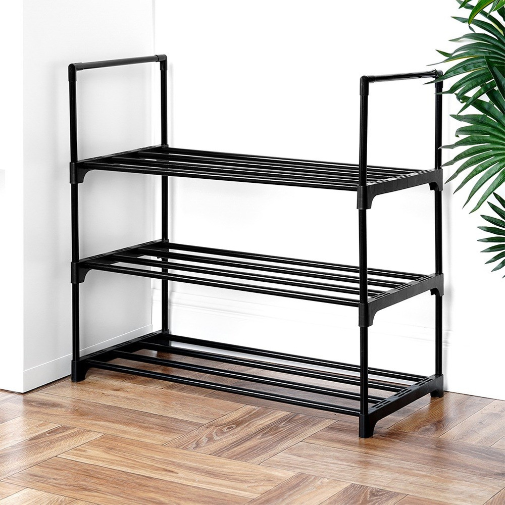 Musta metallinen kenkäteline, 3-tasoinen, 57x28x55 cm