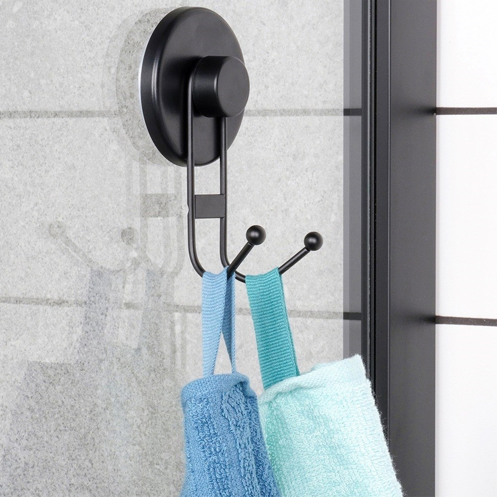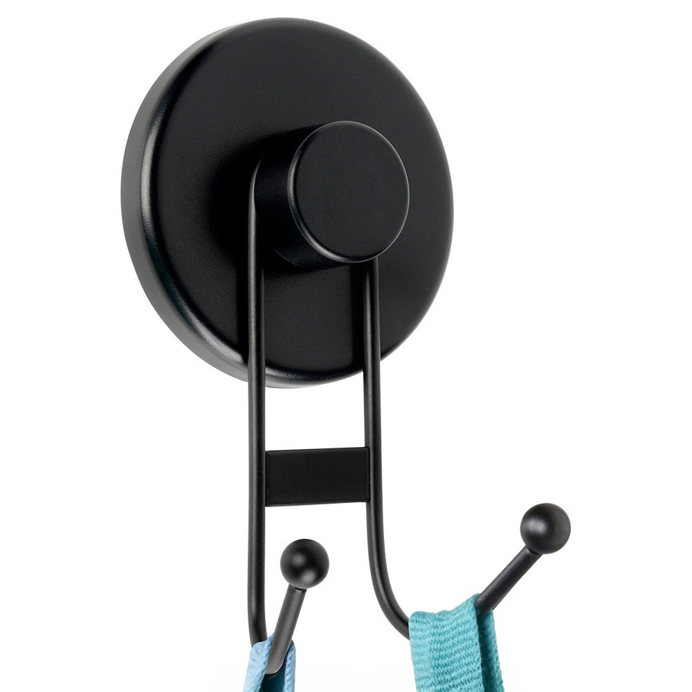 Musta metallinen ripustuskoukku imukupilla, tuplakoko 6,5x5,5x10 cm