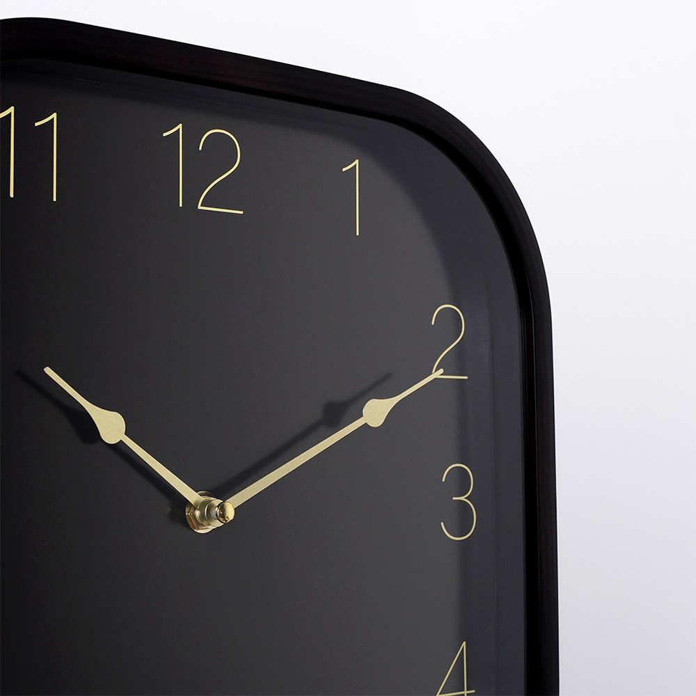 Helppolukuinen kellotaulu - Suurikokoinen kellotaulu tuntimerkinnöillä varmistaa ajan helpon lukemisen kaukaa. Elegantit, kultaiset viisarit lisäävät modernia tyyliä ja luovat tehokkaan kontrastin mustan kellotaulun kanssa.