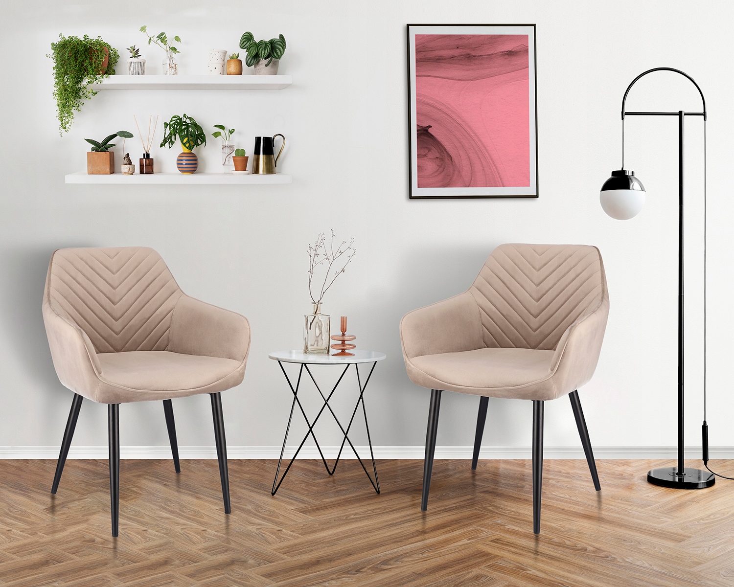 Nojatuoli NAPOLI on modernisoitu klassismia. Tukeva, samettinen tuoli on varustettu pehmeällä istuimella ja korkealla selkänojalla, jossa on koristeellinen kalanruotokuvioinen tikkaus. Hoikat mustat jalat antavat visuaalista keveyttä ja tarjoavat täydellisen vakauden. Tämä tuoli yhdistää tyylikkyyden ja mukavuuden mihin tahansa sisustukseen.