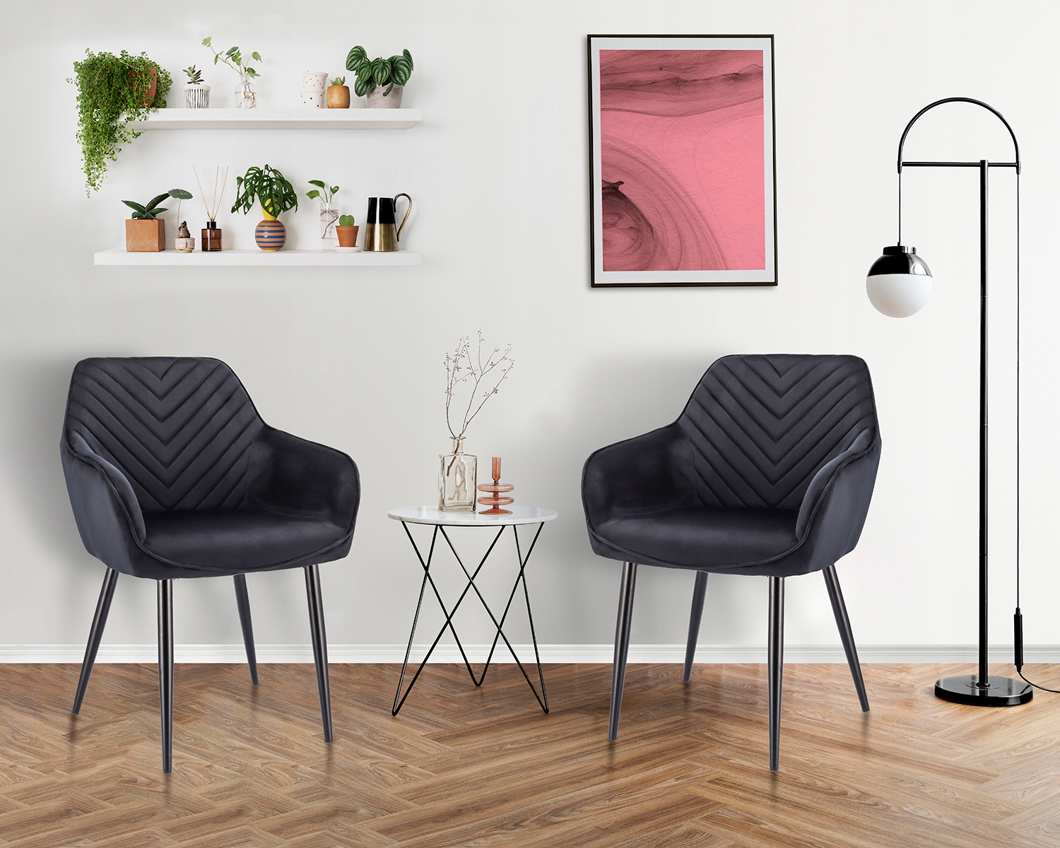 Nojatuoli NAPOLI on modernisoitu klassismia. Tukeva, samettinen tuoli on varustettu pehmeällä istuimella ja korkealla selkänojalla, jossa on koristeellinen kalanruotokuvioinen tikkaus. Koko tuoli näyttää kevyeltä hoikkien mustien jalkojen ansiosta, jotka antavat visuaalisen keveyden ja varmistavat samalla täydellisen vakauden.