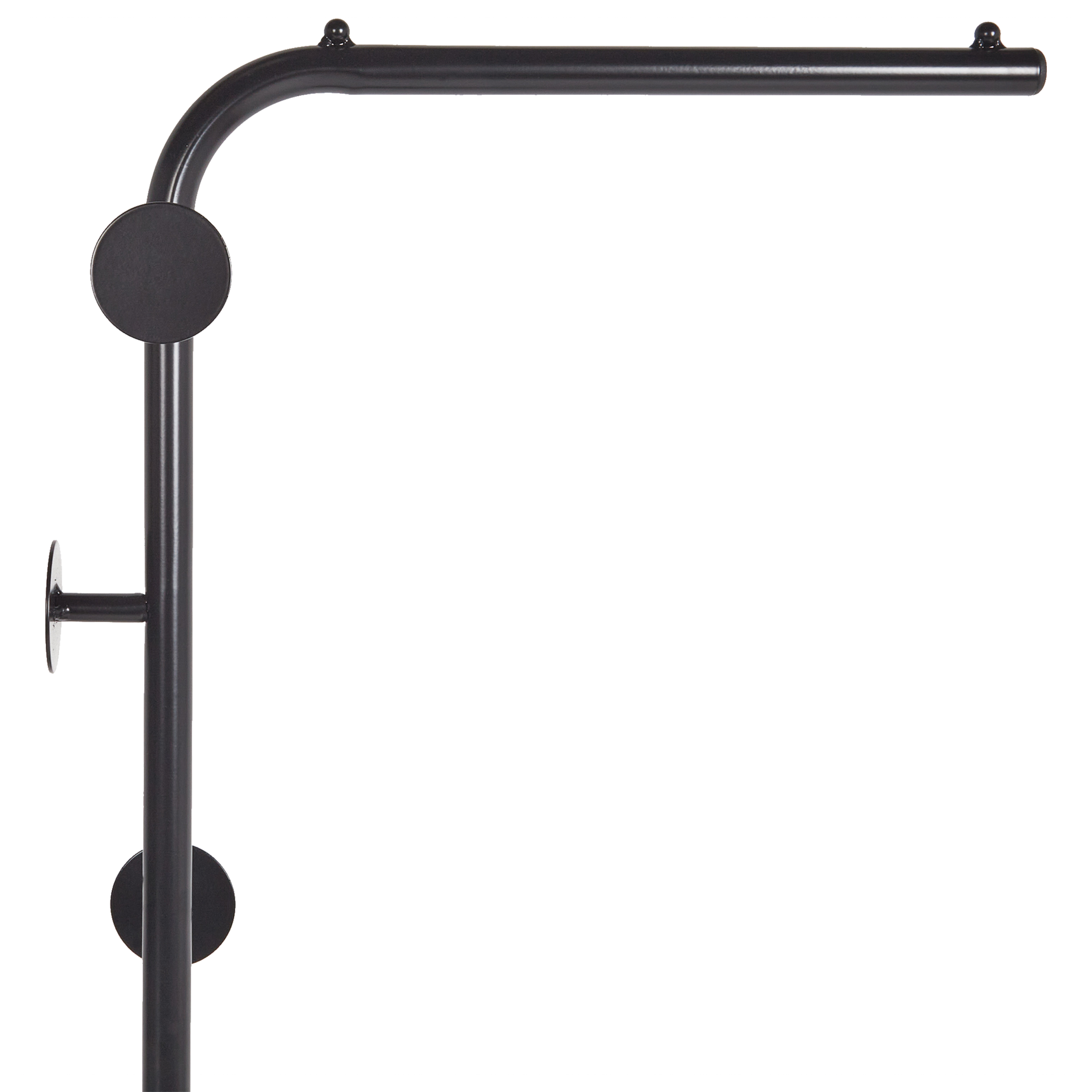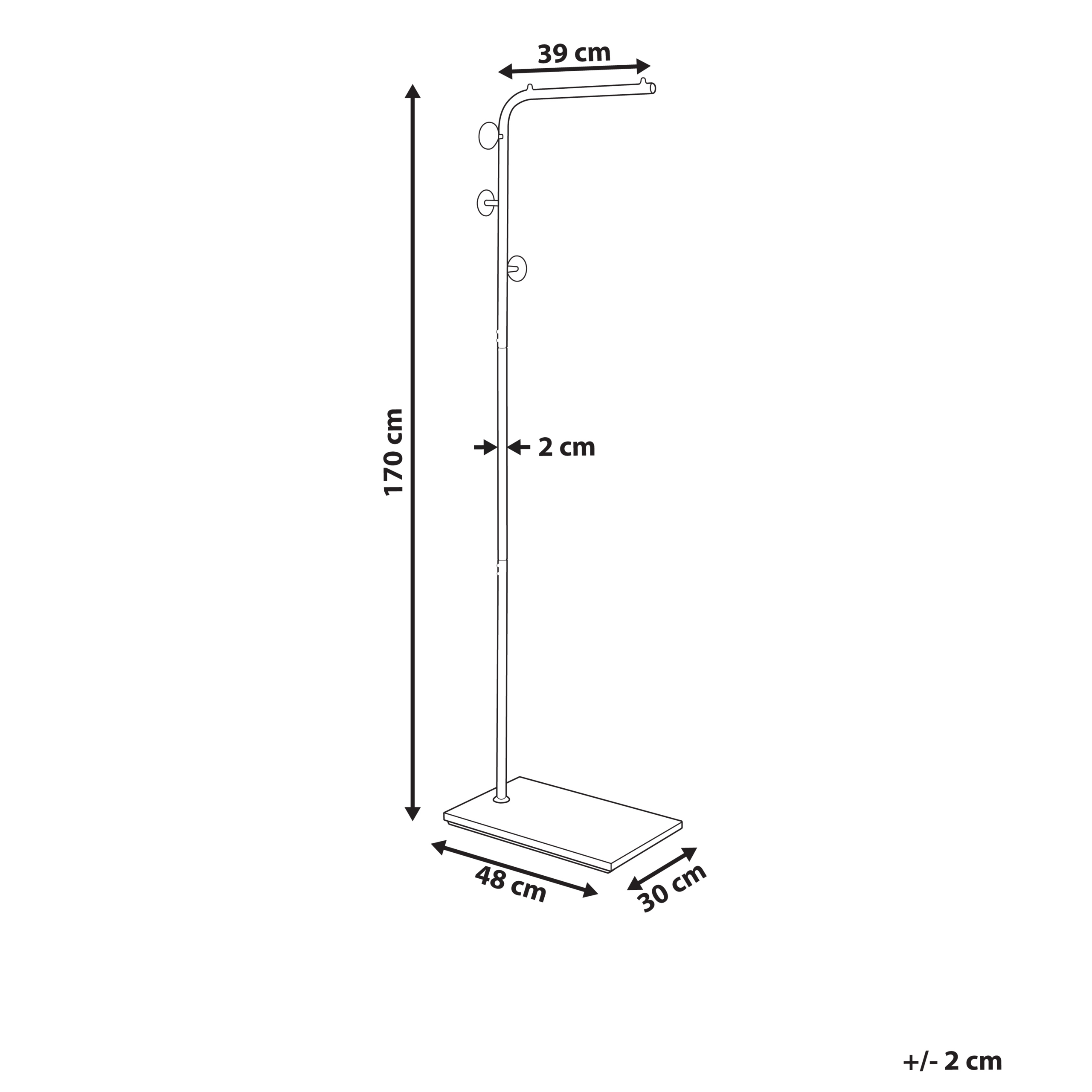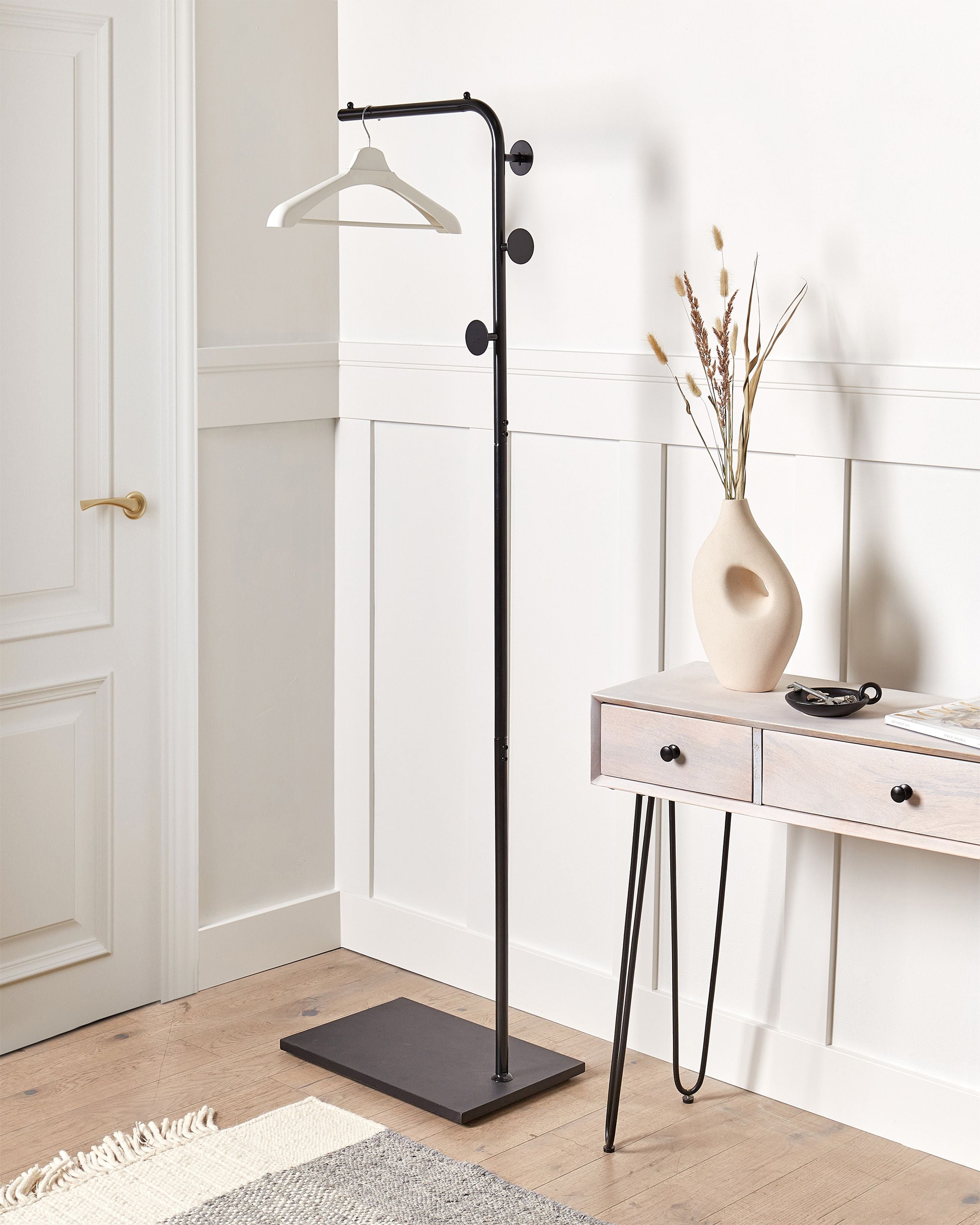 Moderni pystynaulakko koukuilla ja tangolla. Moderni ja elegantti naulakko on tyylikäs lisä jokaiseen eteiseen tai makuuhuoneeseen, taaten että tavarat ovat aina järjestyksessä ja helposti saatavilla. Pystynaulakossa on kolme koristeellista koukkua, joille voi ripustaa takkeja tai asusteita, sekä tukeva kisko pidemmille vaatteille. Se on valmistettu kestävistä materiaaleista, mikä takaa sen tukevuuden.