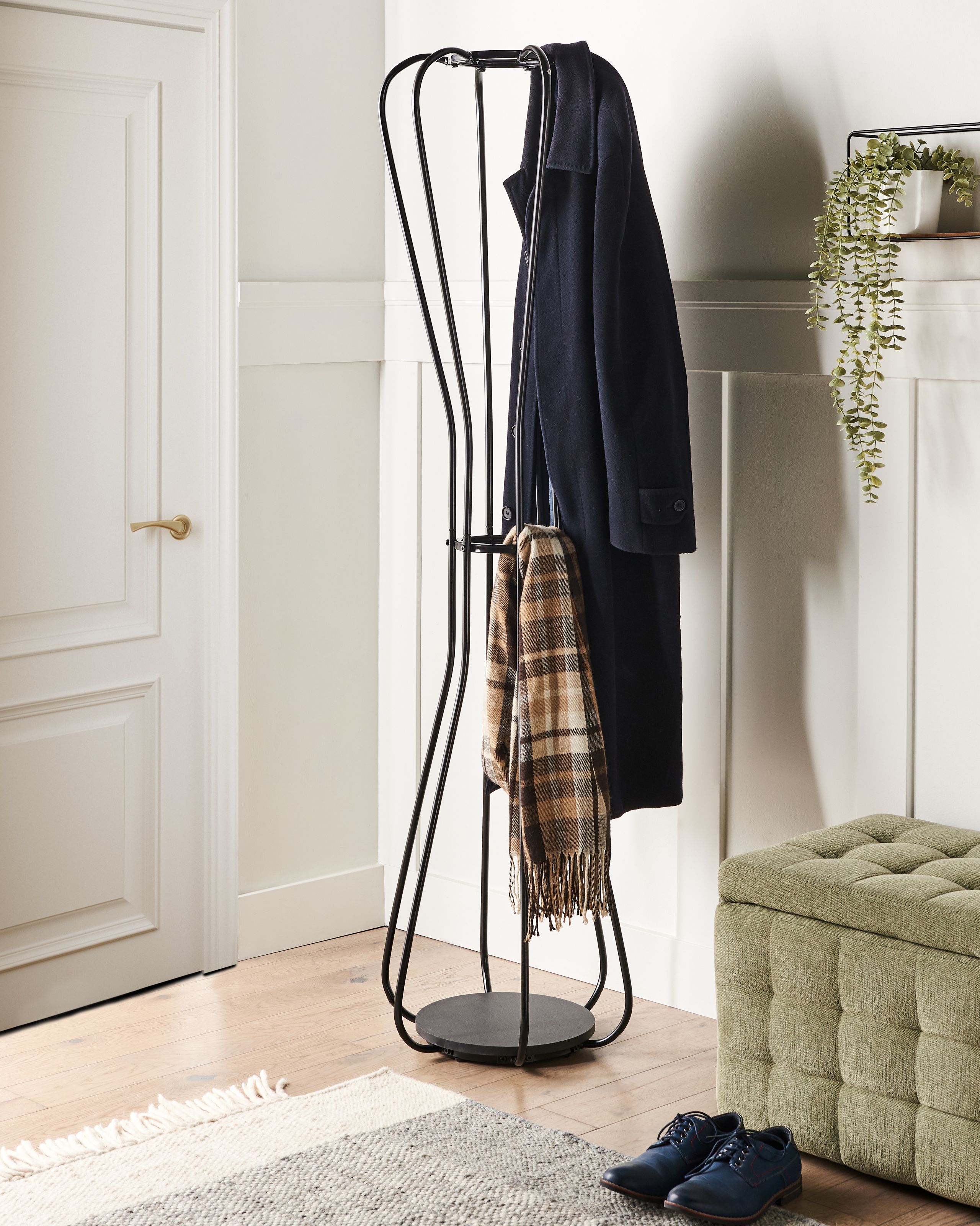 Moderni koristeellinen pystynaulakko. Tässä tyylikkäässä naulakossa on minimalistinen mutta moderni muotoilu, joka sopii saumattomasti mihin tahansa nykyaikaiseen eteiseen, olohuoneeseen tai toimistoon. Puhtaan muotonsa ansiosta se tarjoaa ainutlaatuisen ja käytännöllisen ratkaisun vaatteiden ja asusteiden ripustamiseen, pitäen tilan järjestyksessä sisustusta tukahduttamatta. Pystynaulakko on valmistettu teräksestä ja MDF-levystä, minkä ansiosta se on sekä tukeva että kestävä.