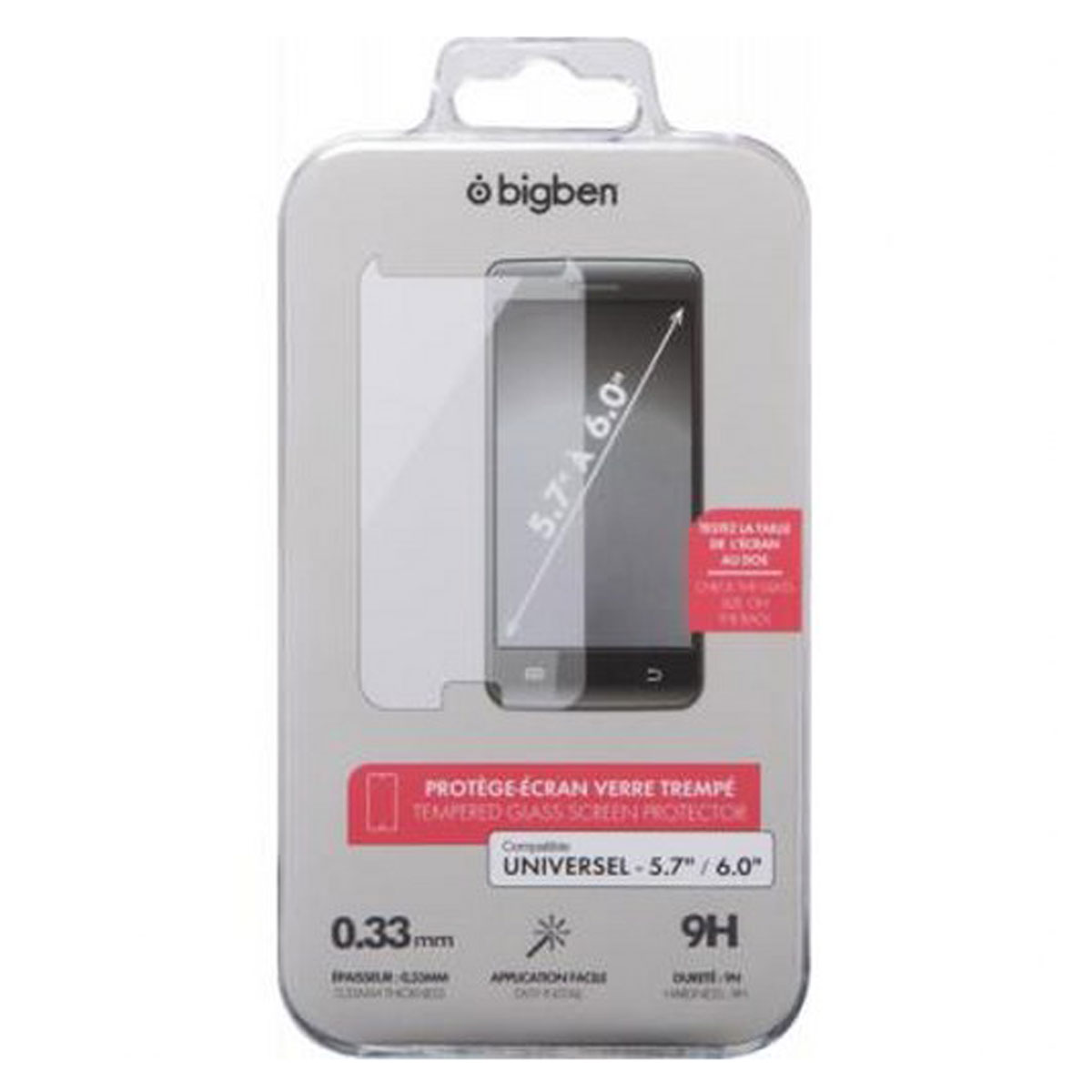 Tämä Bigbenin läpinäkyvä näytönsuoja on valmistettu karkaistusta lasista. Se on yhteensopiva 5,7-6 tuuman älypuhelinten kanssa. Se on naarmunkestävä, ja sen kovuusindeksi on 9H. Sen polymeeripohjainen pinta estää sormenjälkiä. Se tarjoaa pehmeän kosketuksen älypuhelimen sujuvaan käyttöön.