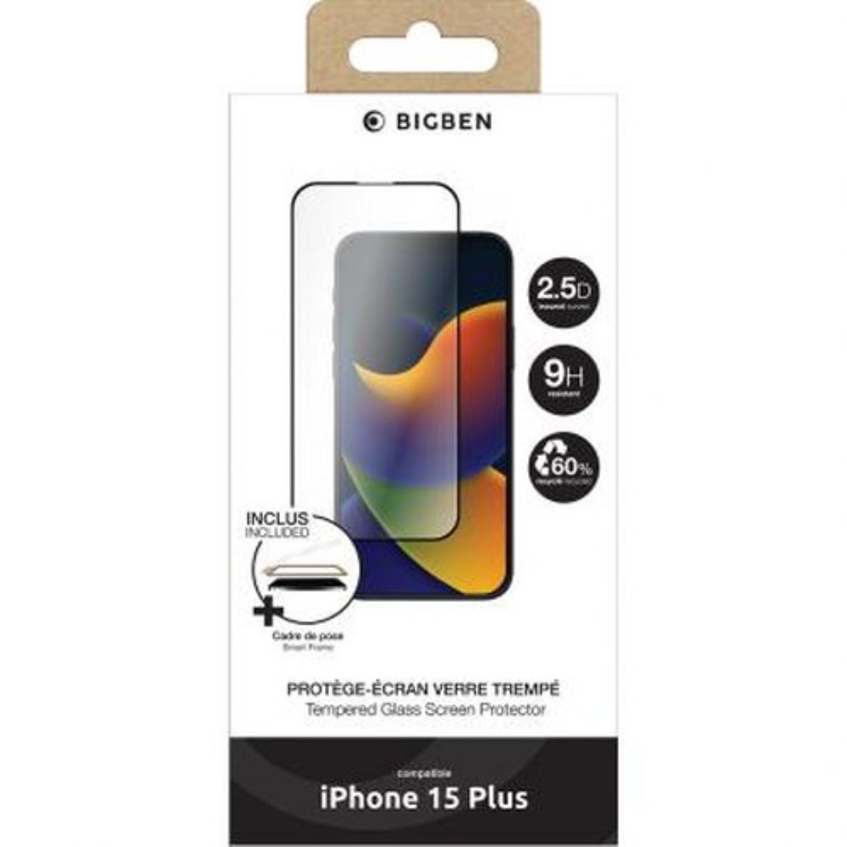 Tämä Bigbenin läpinäkyvä 2.5D-näytönsuoja on valmistettu karkaistusta lasista. Se on yhteensopiva Apple iPhone 15 Plus -puhelimen kanssa. Se on naarmunkestävä, ja sen kovuusindeksi on 9H. Tämän suojalasin mukana toimitetaan puhdistussarja ja SmartFrame-asennusopas.
