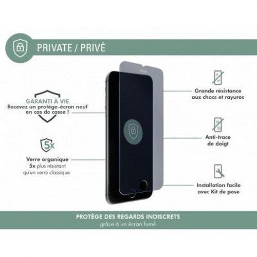 Tämä orgaanisesta lasista valmistettu litteä, läpinäkyvä näytönsuoja on suunniteltu suojaamaan Apple iPhone 6 / 6S Plus / 6 Plus / 7 Plus / 8 Plus -puhelintasi iskuilta, painallukselta ja naarmuilta. Siinä on yksityisyyssuodatin, joka pitää sinut turvassa uteliailta katseilta. Sen oleofobinen pinnoite on suunniteltu poistamaan sormenjäljet.