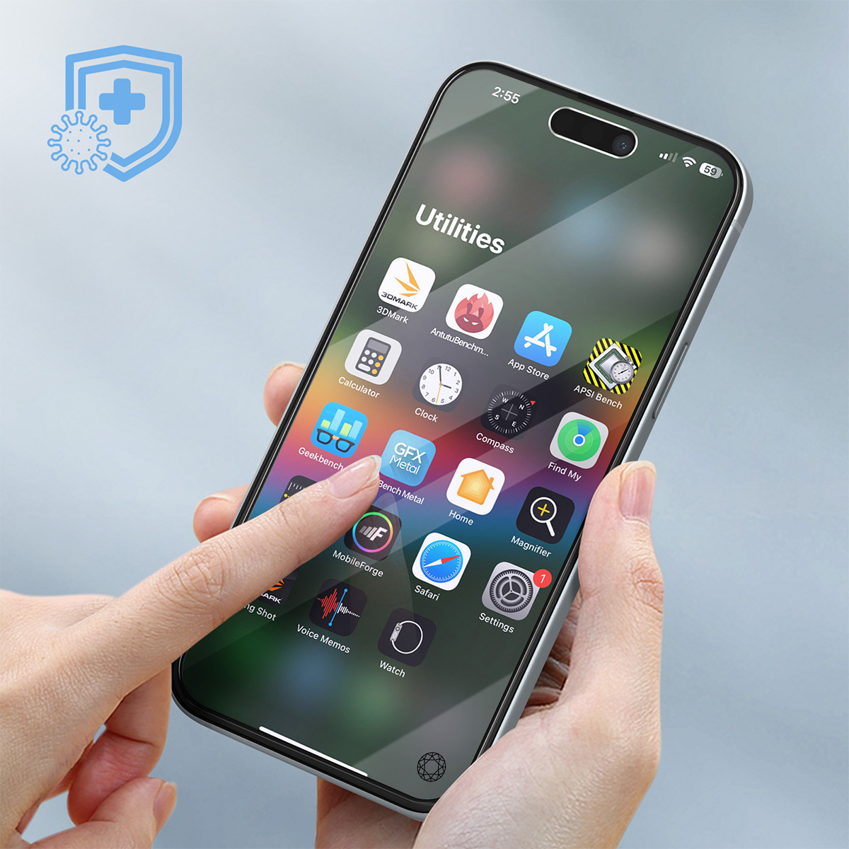 Tämä sinistä valoa kestävästä 2,5D-orgaanisesta lasista valmistettu näytönsuoja on suunniteltu suojaamaan iPhone 15:n näyttöä naarmuilta ja iskuilta. Siinä on teknologia, joka on 5 kertaa kestävämpi kuin tavallinen lasi. Lasi on miellyttävän tuntuista ja täysin läpinäkyvää, joten alkuperäinen kosketus ja värinlaatu säilyvät sujuvina.