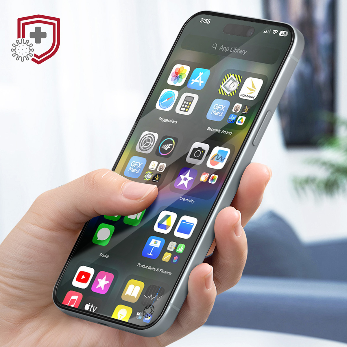 Tämä alkuperäisestä 2,5D-orgaanisesta lasista valmistettu näytönsuoja on suunniteltu suojaamaan iPhone 15 Plus -puhelimen näyttöä naarmuilta ja iskuilta. Siinä on teknologia, joka on 5 kertaa kestävämpi kuin perinteinen lasi. Lasi tarjoaa miellyttävän tuntuman ja täydellisen läpinäkyvyyden, joka takaa tasaisen alkuperäisen kosketuksen ja värinlaadun.