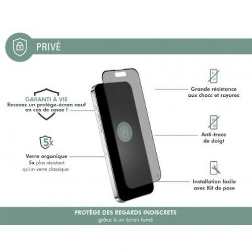 Tämä 2,5D-orgaanisesta yksityisyyslasista valmistettu näytönsuoja, jossa on integroitu yksityisyyssuodatin, on suunniteltu suojaamaan iPhone 15 Plus -puhelimen näyttöä naarmuilta ja iskuilta. Siinä on teknologia, joka on 5 kertaa kestävämpi kuin perinteinen lasi. Lasi tarjoaa miellyttävän tuntuman ja täydellisen läpinäkyvyyden, joka takaa sujuvan alkuperäisen kosketuksen ja värinlaadun.