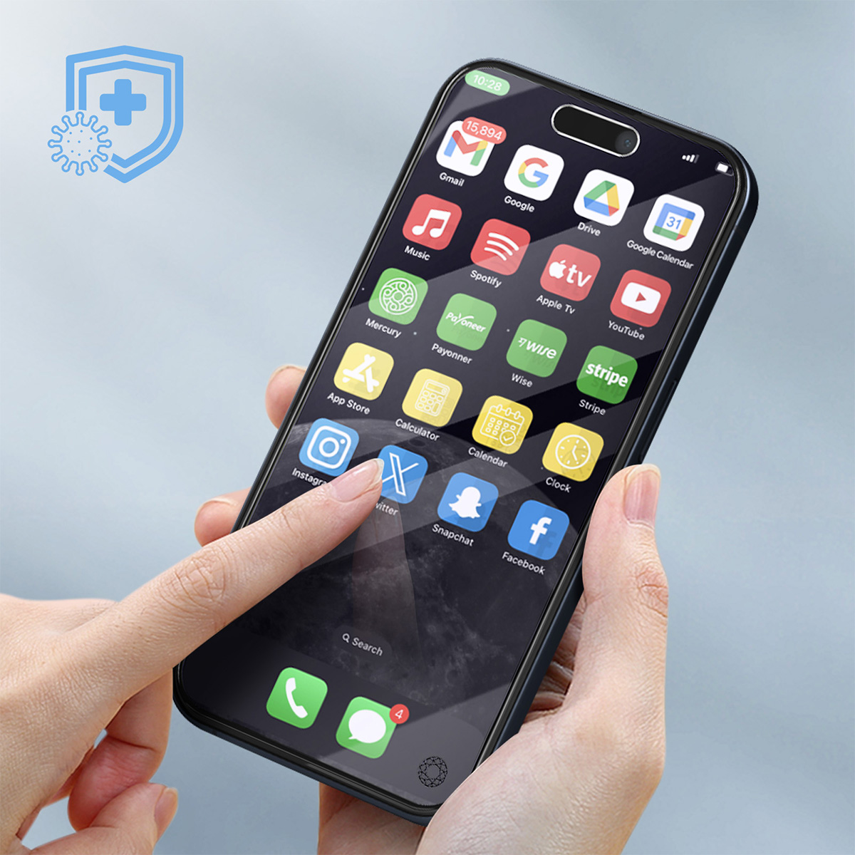 Tämä sinistä valoa kestävästä 2,5D-orgaanisesta lasista valmistettu näytönsuoja on suunniteltu suojaamaan iPhone 15 Pro -puhelimen näyttöä naarmuilta ja kolhuilta. Siinä on teknologia, joka on 5 kertaa kestävämpi kuin tavallinen lasi. Lasi tarjoaa miellyttävän tuntuman ja täydellisen läpinäkyvyyden, joka takaa sujuvan alkuperäisen kosketuksen ja värinlaadun.