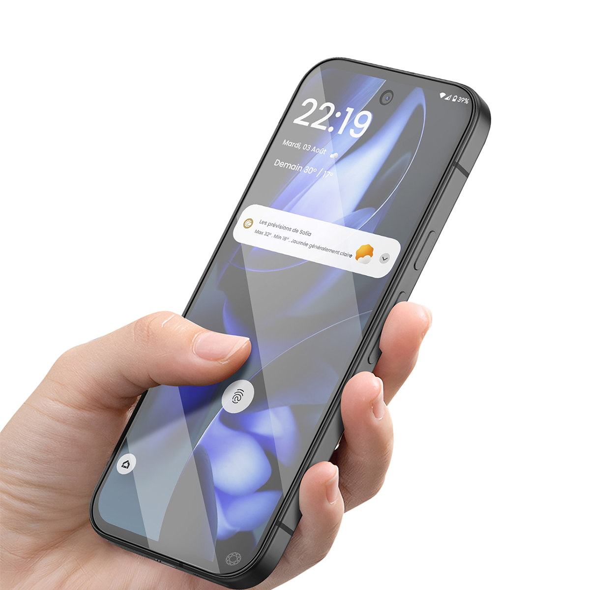 Tämä karkaistua lasia oleva näytönsuoja Google Pixel 9 / 9 Pro -puhelimelle tarjoaa luotettavan ja pitkäaikaisen näytönsuojan. Sen 9H+-teknologia tarjoaa korkean kestävyyden naarmuja, kolhuja ja jokapäiväistä painetta vastaan. Sen litteä, erittäin ohut muotoilu säilyttää alkuperäisen kosketuksen sujuvuuden ja näytön laadun. Oleofobinen käsittely vähentää sormenjälkiä ja tekee puhdistamisesta helppoa.