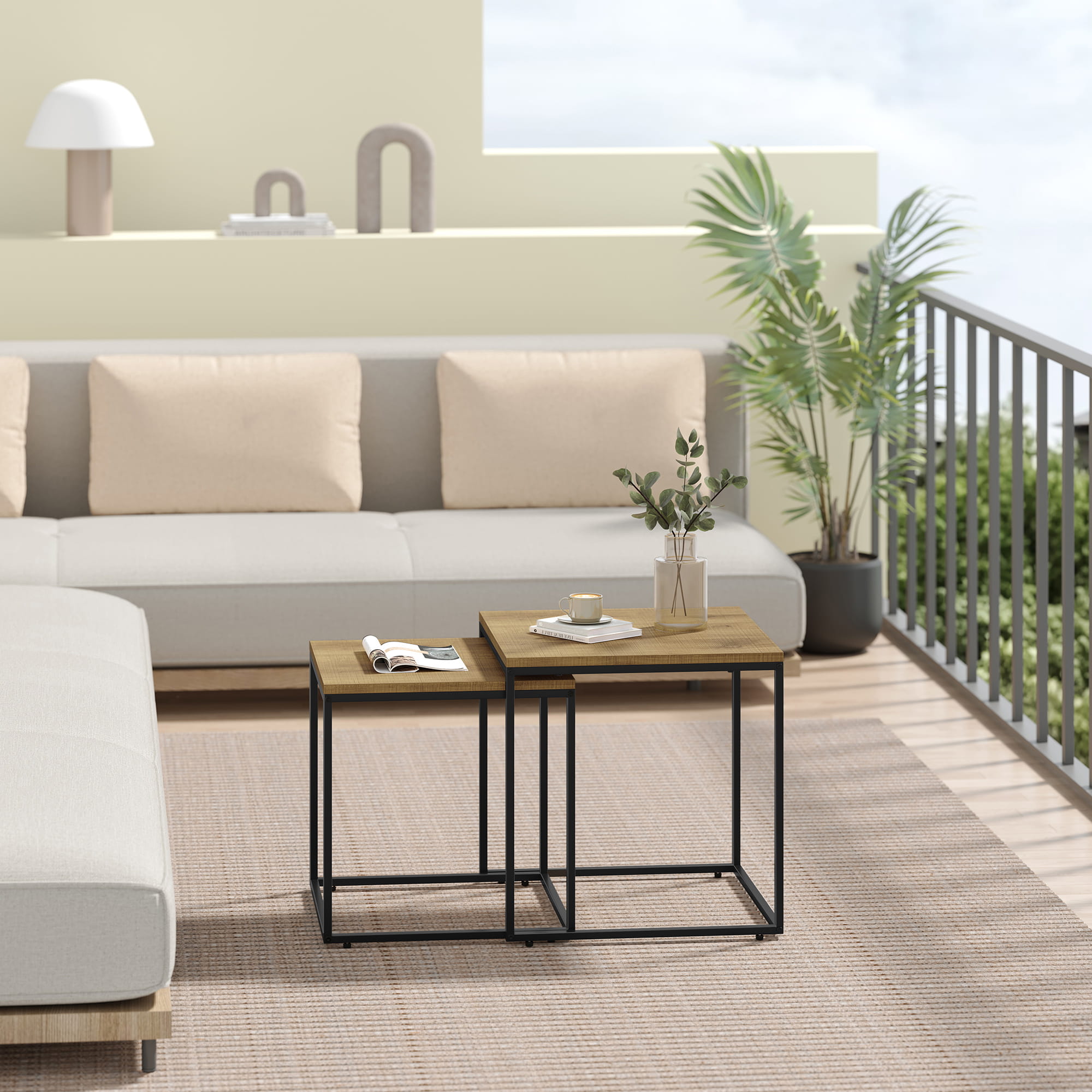 Neliönmuotoinen sohvapöytä, 2 osaa - tammi / mustat jalat