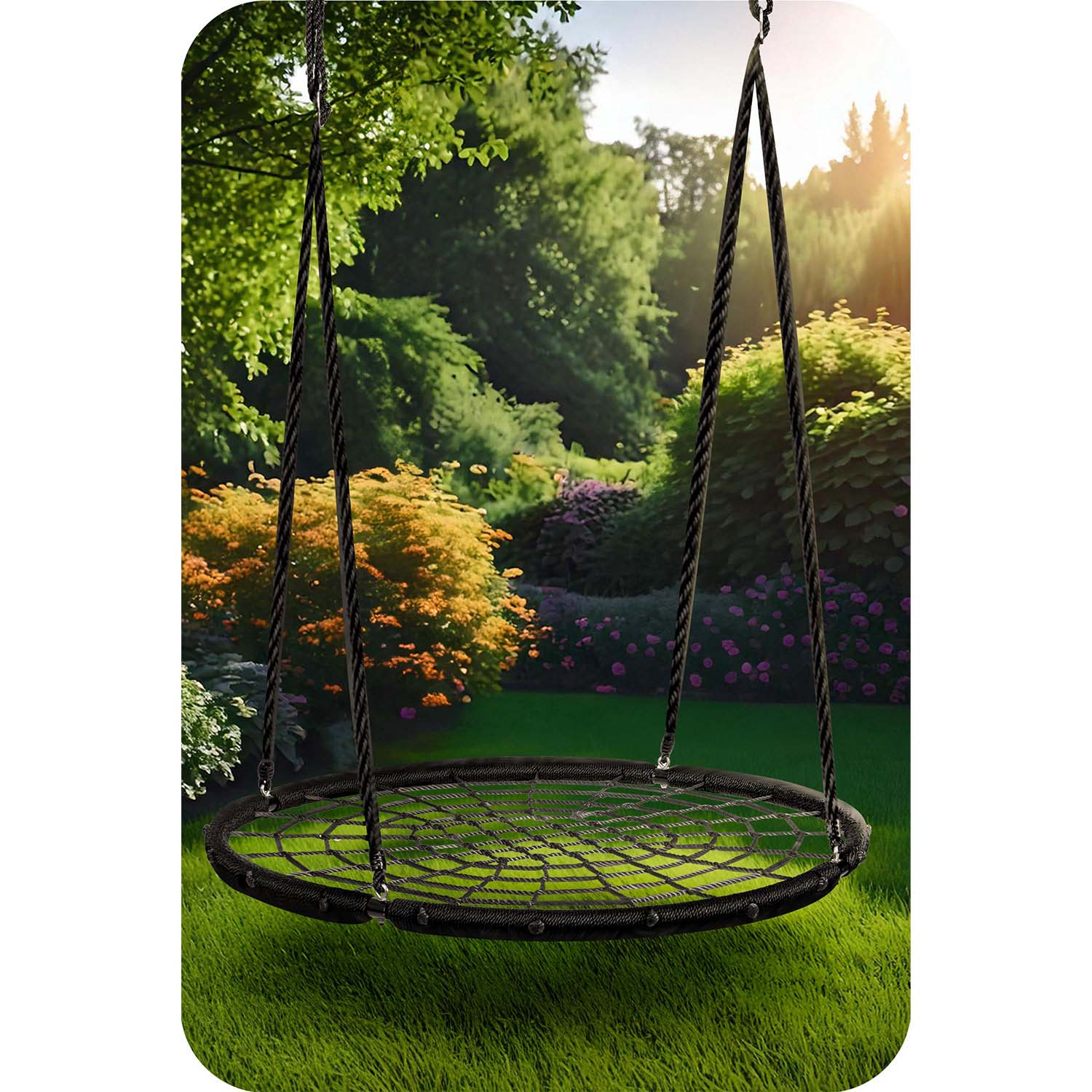 Keinulaudassa on teräsrunko päällystetty suojaavalla punoksella, joka on valmistettu vahvasta hämähäkinseittiköydestä ja paksuista ripustusköysistä. Se varmistaa turvallisuuden, vakauden ja kestävyyden.