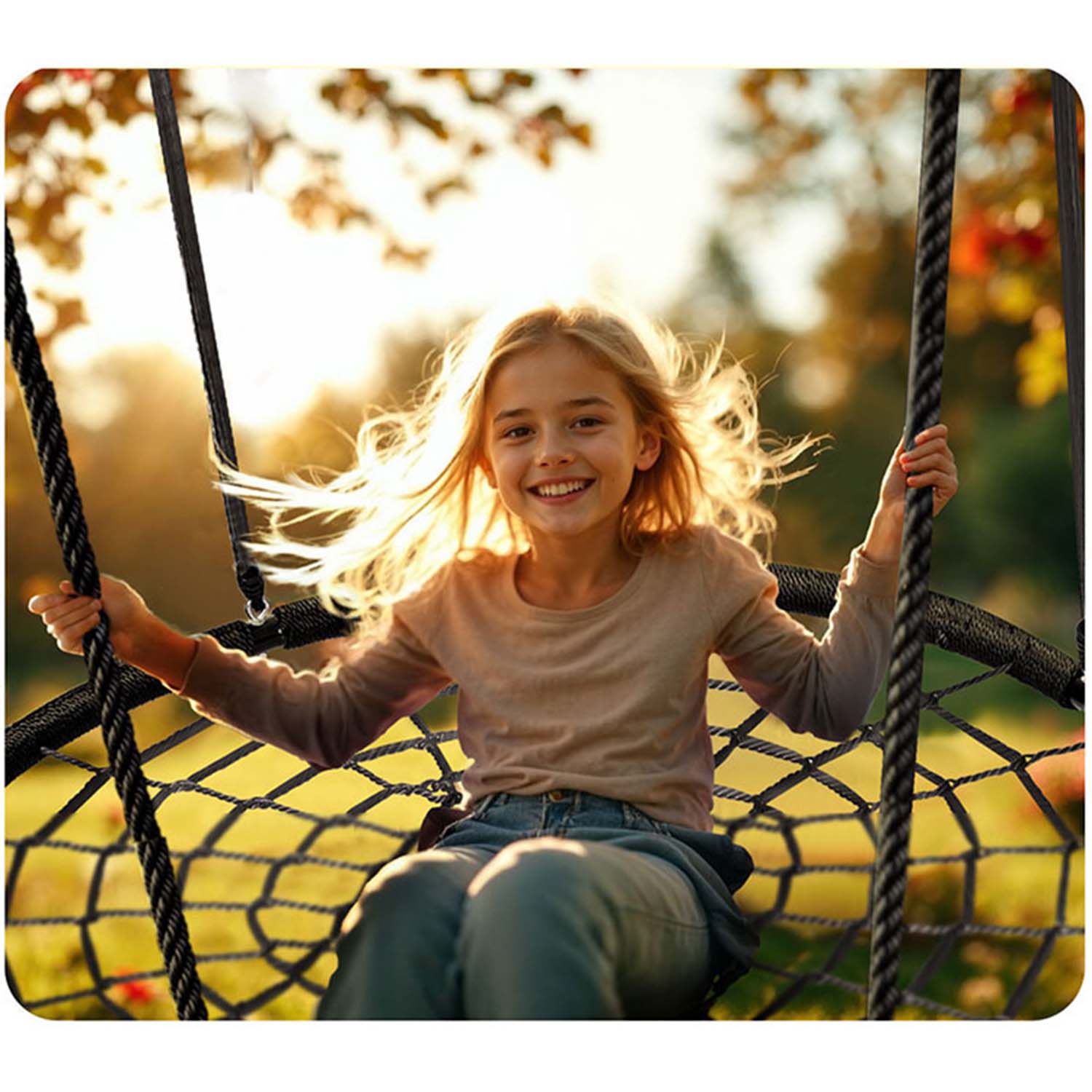 Helppo säätö: säädä korkeus lapsesi koon mukaan. Keinun säädettävän korkeuden ansiosta voit mukauttaa sen lapsesi pituuteen, mikä takaa turvallisen keinunnan ilon.