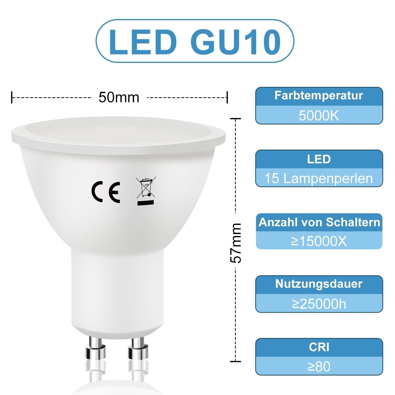 NETTLIFE 10 kpl GU10 LED - lamppuja, viileän valkoinen, 6 W, 5000 K, korvaa 60 W:n energiansäästölampun, 110°:n sädekulma, ei - himmennettävä pakkaus