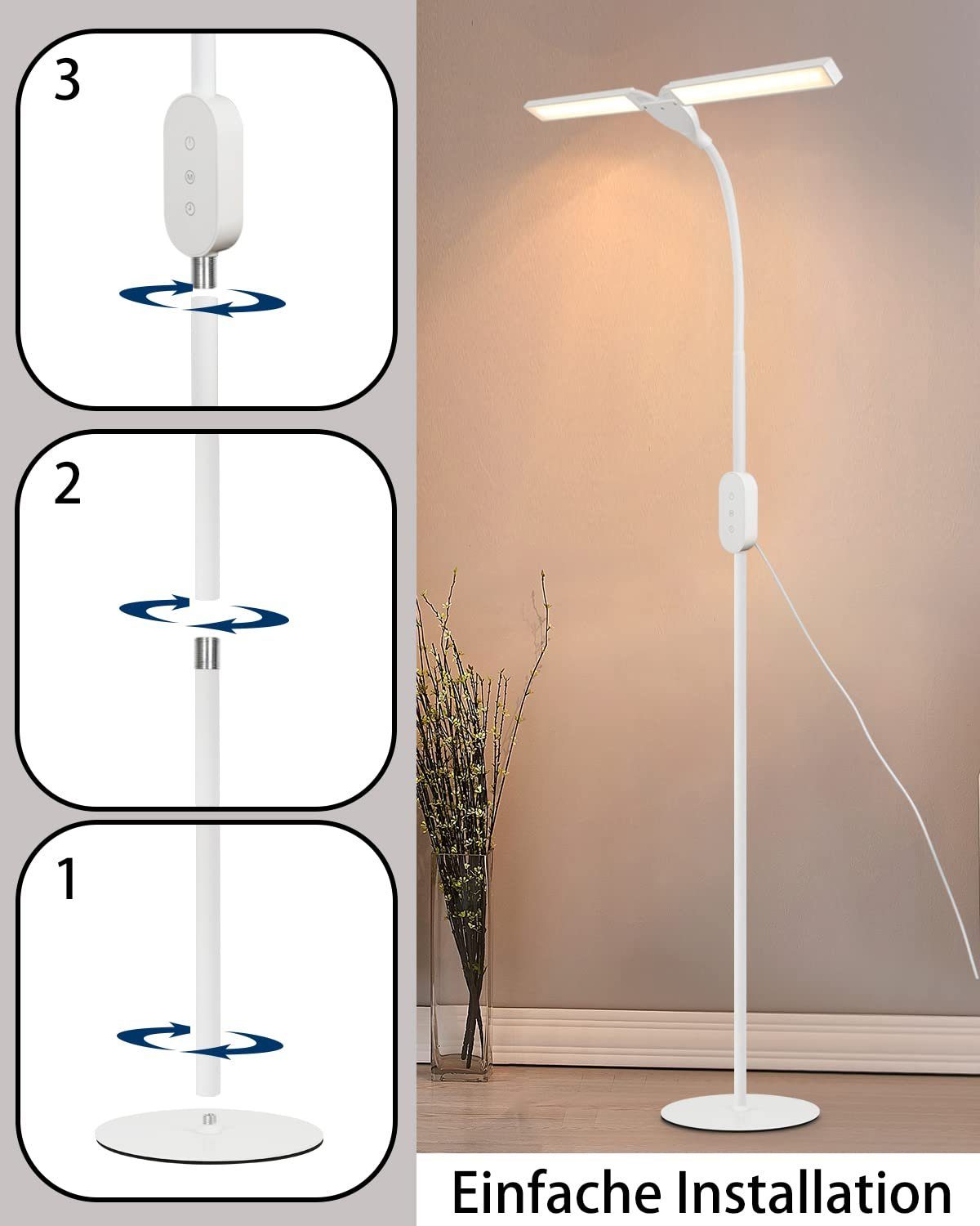 NETTLIFE 158 cm salonkivalaisin LED – Himmennettävä, säädettävä, moderni kosketuskytkin, 9 W, ajastimella ja muistitoiminnolla