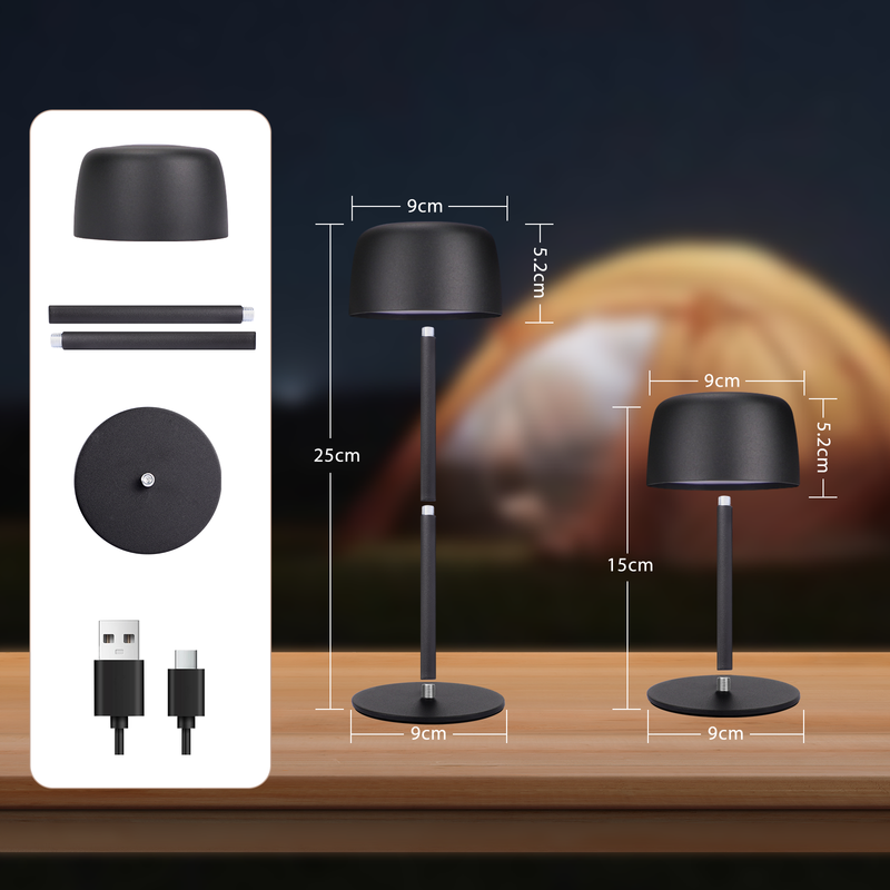 Korkeussäädettävä johdoton pöytävalaisin (2 kpl): Tässä LED-pöytävalaisimessa on yksinkertainen ja moderni muotoilu, ja siinä on kaksi irrotettavaa tankoa, jotka voidaan säätää haluttuun korkeuteen. Jalustan pohjassa on liukumaton alusta, joka estää vahingossa tapahtuvan liukumisen tai putoamisen.