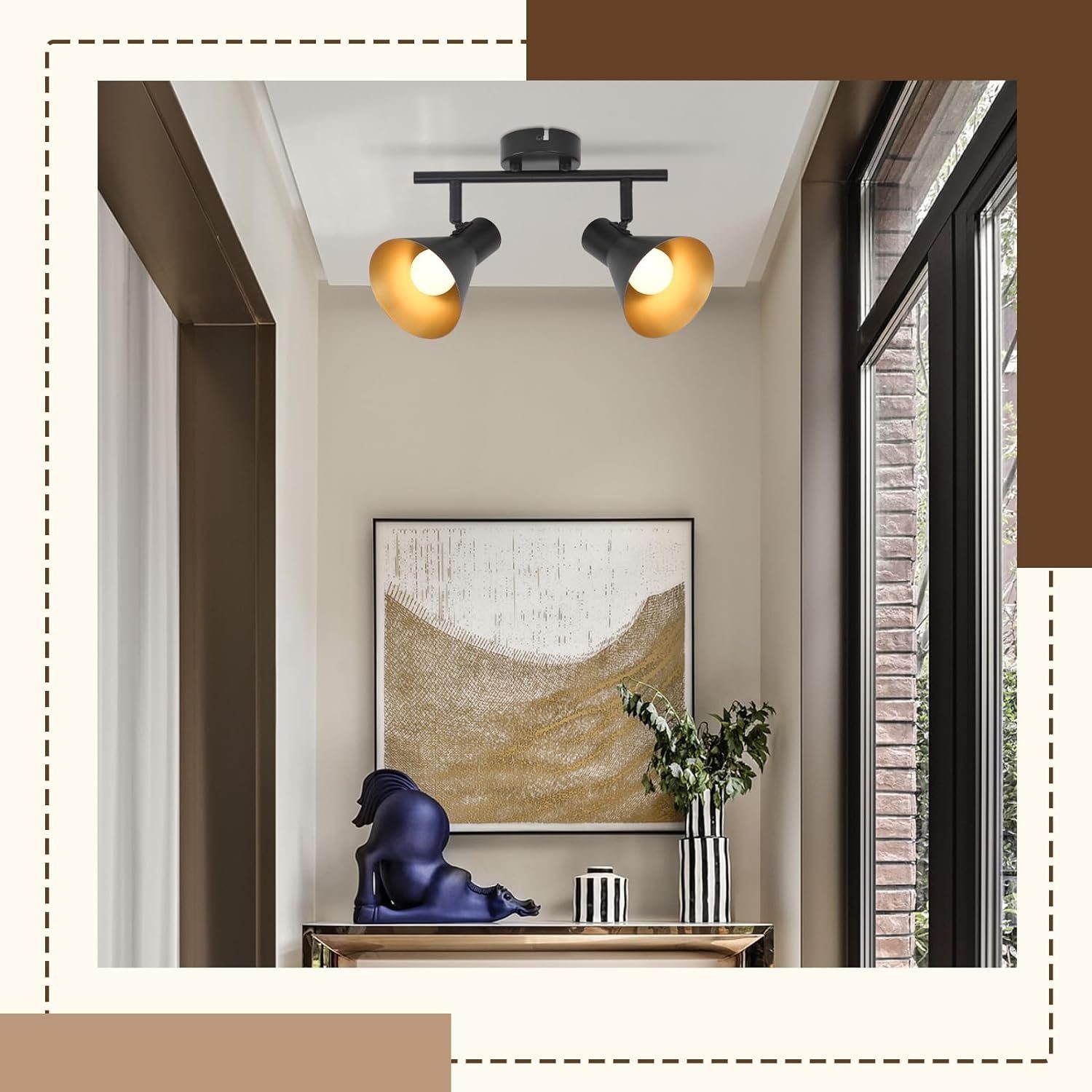 Kääntyvä kattospotti: Kaksilamppuinen kattospotti on käännettävissä 330°, sillä vintage-tyylinen kattovalo spottivalolla voidaan kääntää erikseen, joten voit suunnata sen eri suuntiin tarpeen mukaan ja siten valaista eri alueita huoneessa. Se on ihanteellinen valinta sisävalaistukseen. Vintage-muotoilu ja korkealaatuinen materiaali: Musta metallinen kattospotti yhdistää retro- ja teollisen tyylin ja antaa kodillesi täydellisen retro-ilmeen. E14-spottivalaisin on valmistettu korkealaatuisesta raudasta, jossa on metallipintakäsittely, ei maalin kuoriutumista eikä ruostetta. Kestävä ja tukeva vintage-musta kattovalo. Kattospotin parametrit: Kattospotin koko: 28 x 11 x 21 cm | Varjostimen halkaisija: 11 cm | Kattoon asennettavan pohjan halkaisija: 8 cm | Kaksilamppuinen keittiön kattovalo sopii E14-polttimoille. Keittiön kattovalaisinta voidaan käyttää erityyppisten polttimoiden kanssa. Yhteensopiva LED-lamppujen tai tavallisten halogeenilamppujen kanssa, yksittäisen lampun pään enimmäisteho ei ylitä 25 W (Huom: Tuote ei sisällä polttimoita). Helppo asennus: Vintage LED-kattospoteissa on kaksi asennustapaa: ne voidaan asentaa kattoon tai seinään. Olipa kyseessä kattospotti tai teräksinen kattospotti, kattospotti on täydellinen valinta sinulle. Kattospotti on kytketty suoraan piiriisi ilman erillistä kytkintä.