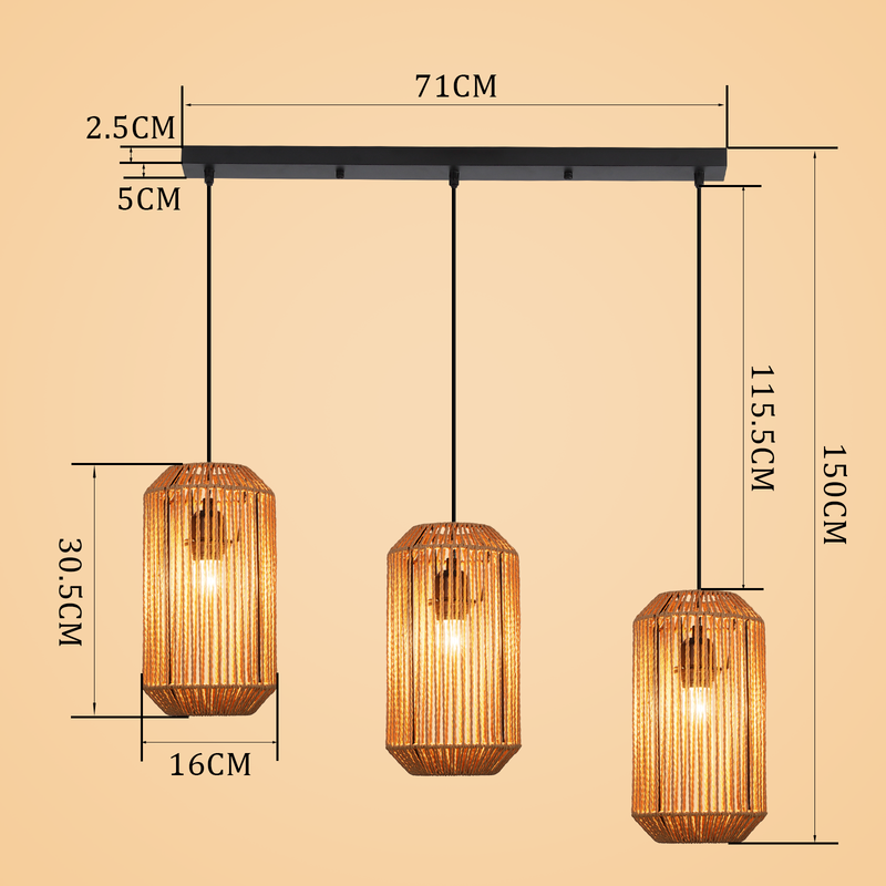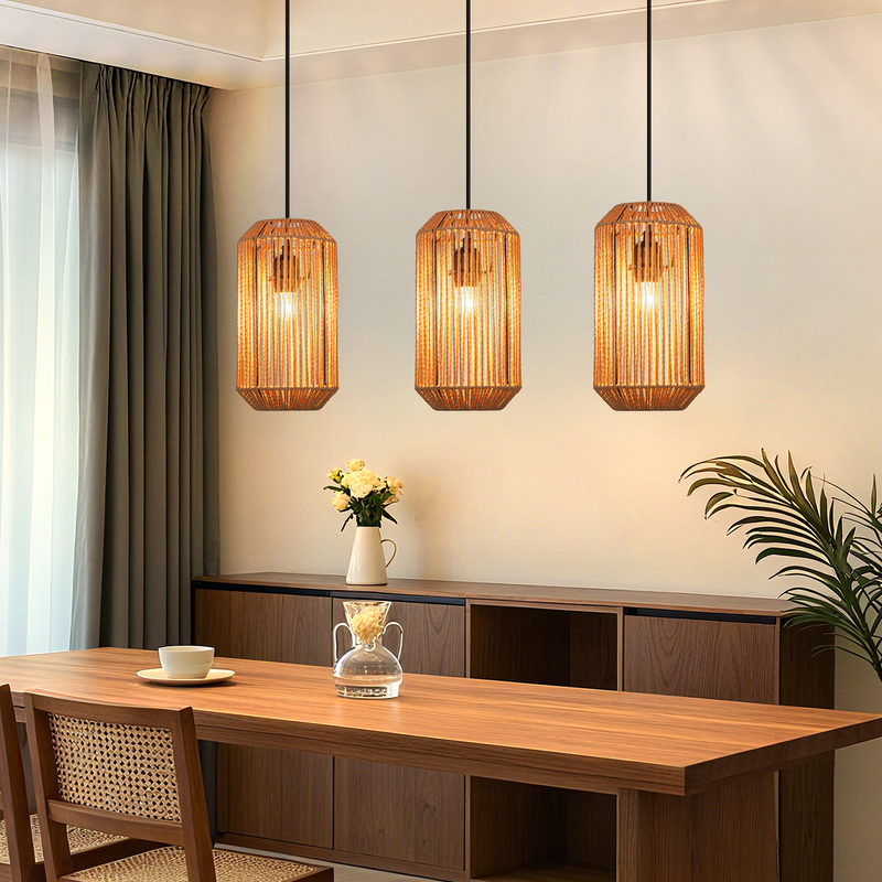 NETTLIFE 3 hehkulamppua rottinkirippuvalaisin vintage punottu heinäkorsi E27 boho säädettävä korkeus makuuhuone olohuone (lamppu ei mukana)