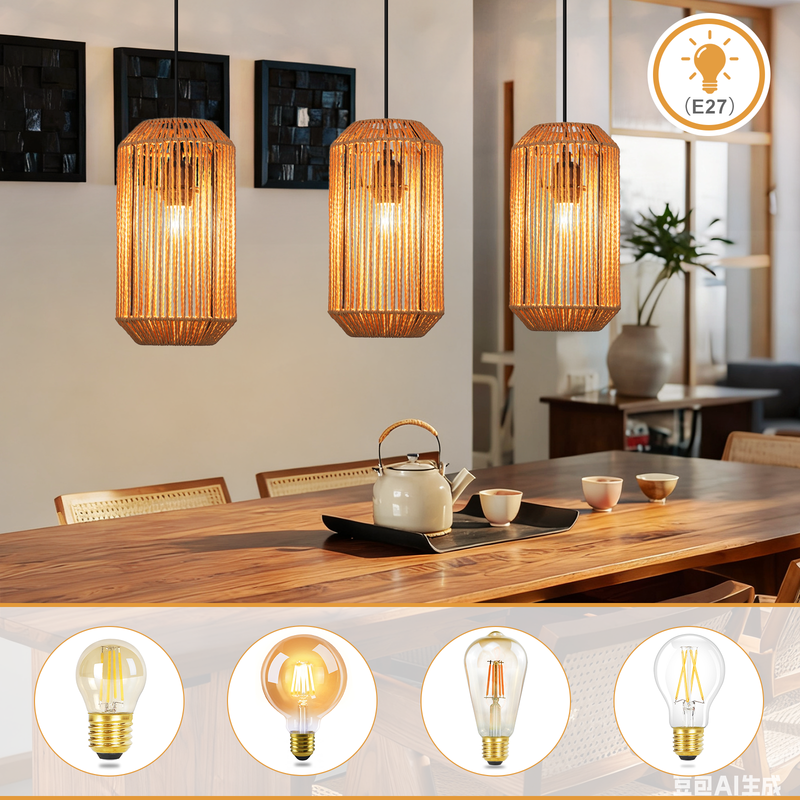 AINUTLAATUINEN MALLI: Tämä kattokruunu edustaa lyhtymäistä kudottua muotoilua, jossa on uniikki ja hienostunut verkkomainen rakenne. Valo välittyy sisältä ulospäin luoden erityisen visuaalisen vaikutelman. Samalla se tarjoaa erinomaisen ilman kierron ja suodattaa valoa tehokkaasti, luoden lämpimän ja viihtyisän tunnelman.