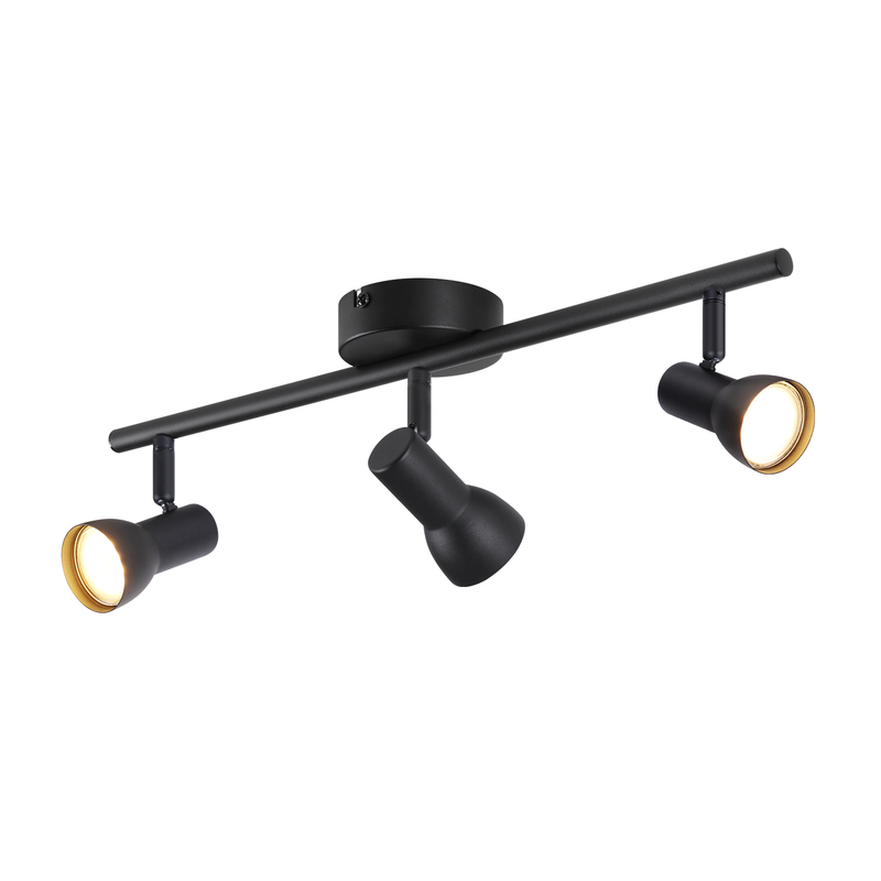 Tekniset tiedot: Mitat: 42,5 x 8 x 15,5 cm; Valonlähde: GU10 (lamppu ei sisälly); Teho: Enintään 25 wattia; Jännite: 220-240 V AC; Pistorasioiden määrä: 3; Materiaali: rauta; Kääntöalue: 90° pystysuunnassa, 350° vaakasuunnassa