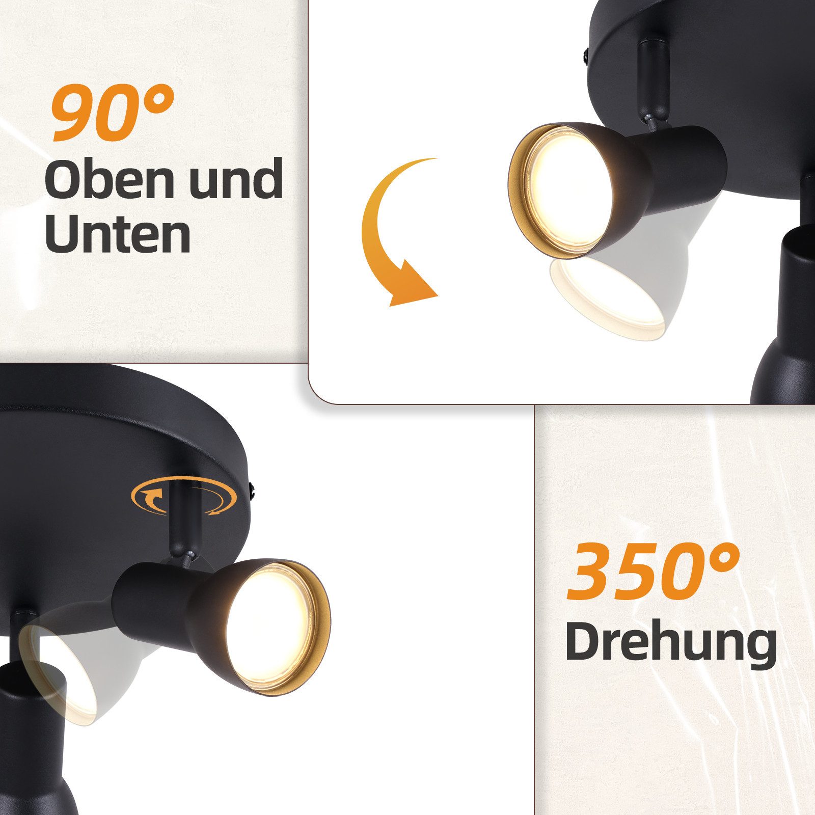Tarkka valaistus: GU10-kanta on yhteensopiva useiden LED-lamppujen kanssa ja tarjoaa energiatehokkaan valaistusratkaisun. Kääntötoiminnon avulla valaistuskulmaa voidaan säätää tarkasti kohdennettuun korostusvalaistukseen tai tunnelmallisiin efekteihin. Ihanteellinen vitriineihin, gallerioihin, olohuoneisiin ja muihin tiloihin.
