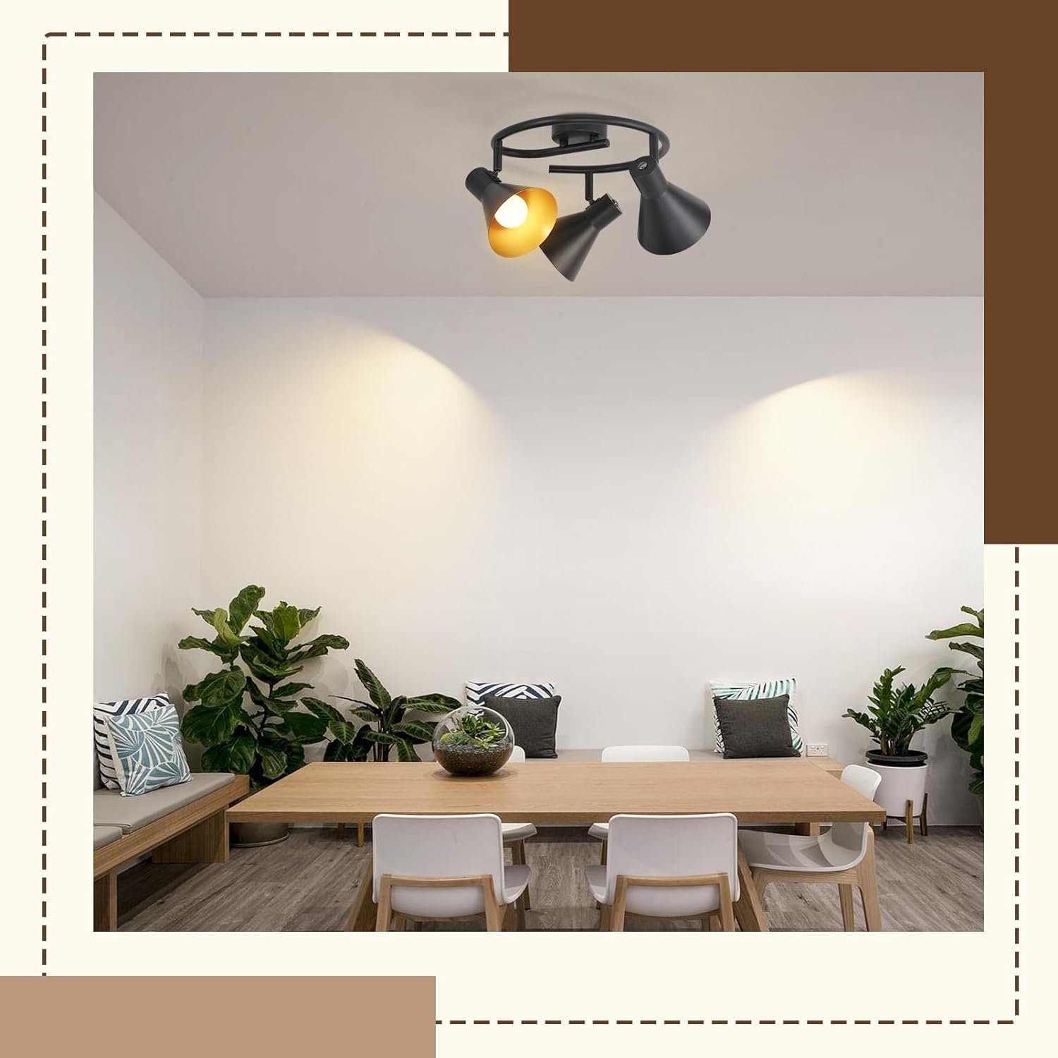 Kääntyvä kattospotti: Kolmen lampun kattospotti on 330° kääntyvä, ja koska vintage-kattovalaisimen spotit voidaan kääntää erikseen, voit suunnata valoa eri suuntiin tarpeidesi mukaan ja valaista siten eri alueita huoneessa. Se on ihanteellinen valinta sisävalaistukseen. Vintage-muotoilu ja korkealaatuinen materiaali: Musta metallinen kattospotti yhdistää retro- ja industrial-tyylin ja antaa kodillesi täydellisen retro-ilmeen. E14-spottivalaisin on valmistettu korkealaatuisesta raudasta metallipintakäsittelyllä, ei maalin hilseilyä eikä ruostetta. Kestävä ja pitkäikäinen vintage-musta kattovalaisin. Kattospotin parametrit: Kattospotin koko: 25 x 21 cm | Varjostimen halkaisija: 11 cm | Kattokiinnikkeen halkaisija: 8 cm | Kolmen lampun keittiön kattovalaisin sopii E14-lampuille. Keittiön kattovalaisinta voidaan käyttää erityyppisten lamppujen kanssa. Yhteensopiva LED-lamppujen tai tavallisten halogeenilamppujen kanssa, yhden lampun pään enimmäisteho ei ylitä 25 W (Huomaa: Tuote ei sisällä lamppuja). Helppo asennus: Vintage-LED-kattospoteissa on kaksi asennustapaa: ne voidaan asentaa kattoon tai seinään. Olipa kyseessä kattospotti tai teräksinen kattospotti, kattospotti on täydellinen valinta sinulle. Kattospotti on kytketty suoraan virtapiiriisi ilman erillistä kytkintä.