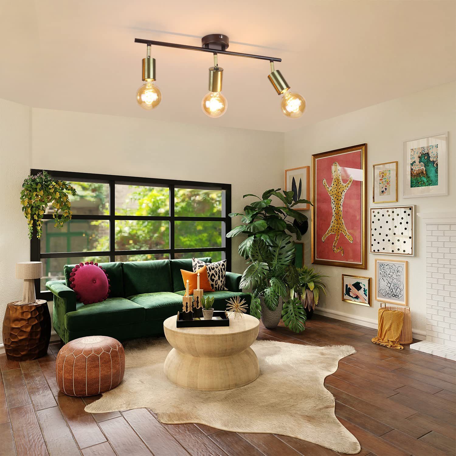 Joustava ja käytännöllinen: Tätä 3-valon kattospottivalaisinta voidaan vapaasti kääntää ylös ja alas, vasemmalle ja oikealle. Ja nämä ainutlaatuisella tee-se-itse-tyylillä varustetut kattospottivalaisimet voivat valaista halutun alueen. Kultaisen värinen metallikehys sopii yhteen mustan kattokuvun kanssa. Jos pidät vintage-väreistä, Edison-lamput ovat erityisen tehokkaita. (Lamppu ei sisälly toimitukseen)