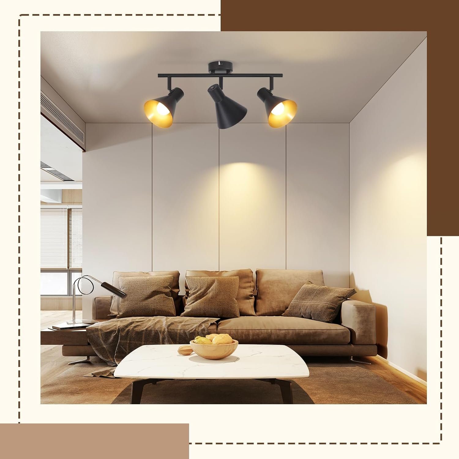 Säädettävä kattospotti: Kolmilamppuinen kattospotti on käännettävissä 330°, ja koska vintage-kattovalaisimen spotteja voidaan kääntää erikseen, voit kohdistaa ne eri suuntiin tarpeen mukaan ja valaista siten eri alueita huoneessa. Ihanteellinen valinta sisävalaistukseen.
