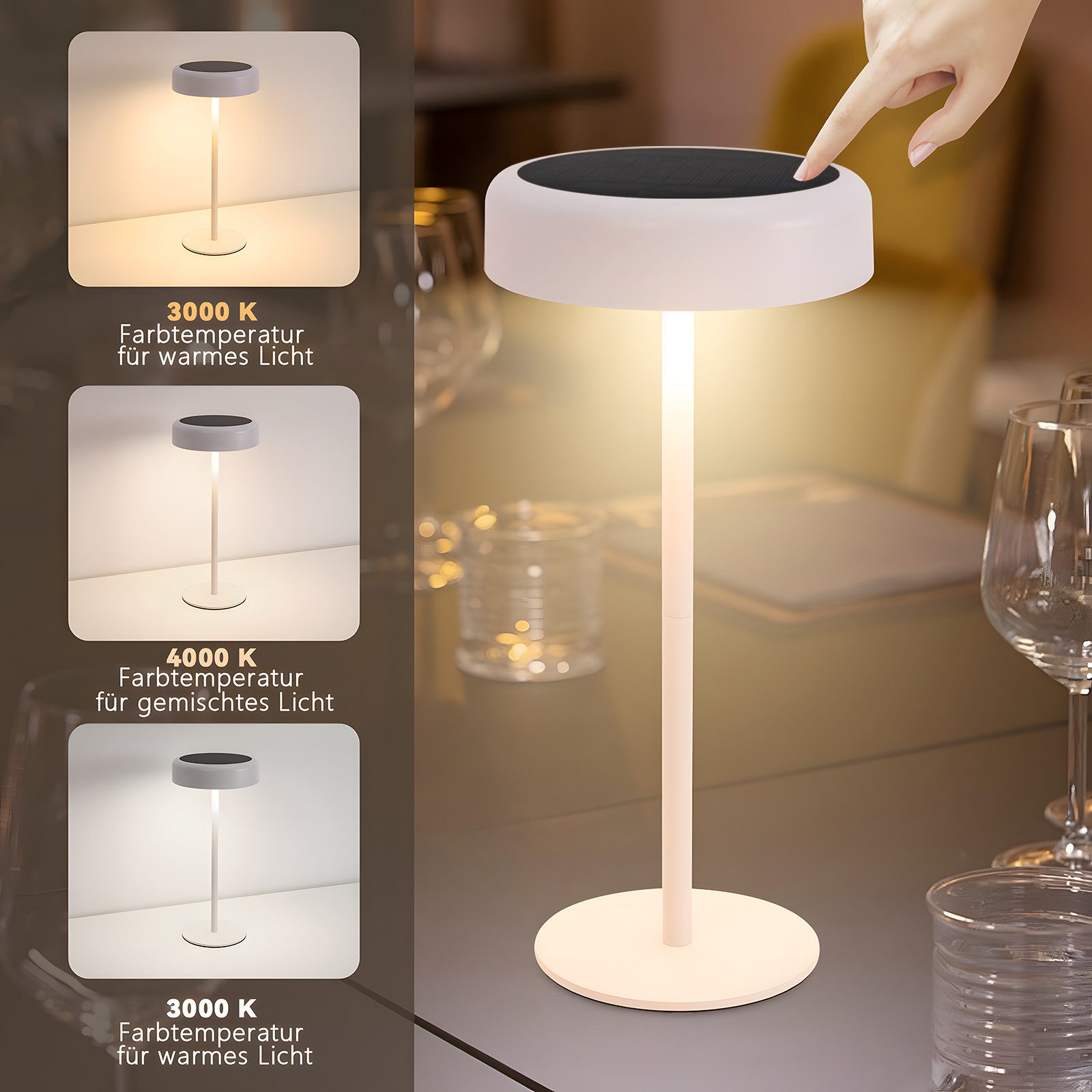 Klassinen, kannettava muotoilu: Pöytävalaisimessa on yksinkertainen ja elegantti muotoilu ja 30 cm korkeus, joten se sopii täydellisesti kaikenlaisiin pöytiin, kaappeihin ja baareihin. Saatavilla kahdessa klassisessa värissä, mustana ja valkoisena, joista voit valita, mikä lisää ainutlaatuista tyyliä kotiisi. Kätevä kosketushimmennys: Tämä LED-pöytävalaisin tukee kosketushimmennystä, joten sitä on erittäin helppo käyttää. Voit helposti säätää valoa yhdellä kosketuksella. Himmennystilaa on kolme: lyhyt painallus vaihtaa valon väriä 3000–6500 K:n välillä, kun taas pitkä painallus säätää kirkkautta 0–100 %:n välillä erilaisten tilanteiden valaistustarpeiden mukaan. Kannettavuuden ja latauksen edut: Pöytävalaisimella on kolme kätevää käyttötarkoitusta. Se voidaan kytkeä päälle suoraan latauksen aikana, ja täyteen latautumisen jälkeen sitä voidaan siirtää vapaasti kodin ympäri irrottamalla USB-portti. Lisäksi sitä voidaan ladata myös aurinkoenergialla päivän aikana ja käyttää hätävalona, joka tarjoaa luotettavaa valoa hätätilanteessa. Energiatehokas ja pitkä akunkesto: Sisäänrakennettu 3600 mAh:n litium-akku mahdollistaa 6 tunnin jatkuvan käytön työvalosta riippuen. USB Type-C -latauskaapelilla varustettu lamppu latautuu täyteen vain 4,5 tunnissa, mikä lyhentää latausaikaa merkittävästi ja mahdollistaa lampun huolettoman käytön. Laaja käyttöalue: Paristokäyttöisenä puutarhavalaisimena sillä on erinomainen suojauskyky. Se sopii paitsi sisätiloihin, kuten makuuhuoneisiin ja olohuoneisiin, myös ulkotiloihin, kuten parvekkeille ja käytäville. Se sopii täydellisesti lukemiseen ja kirjoittamiseen, baarin koristeeksi tai juhliin romanttisen tunnelman luomiseksi.