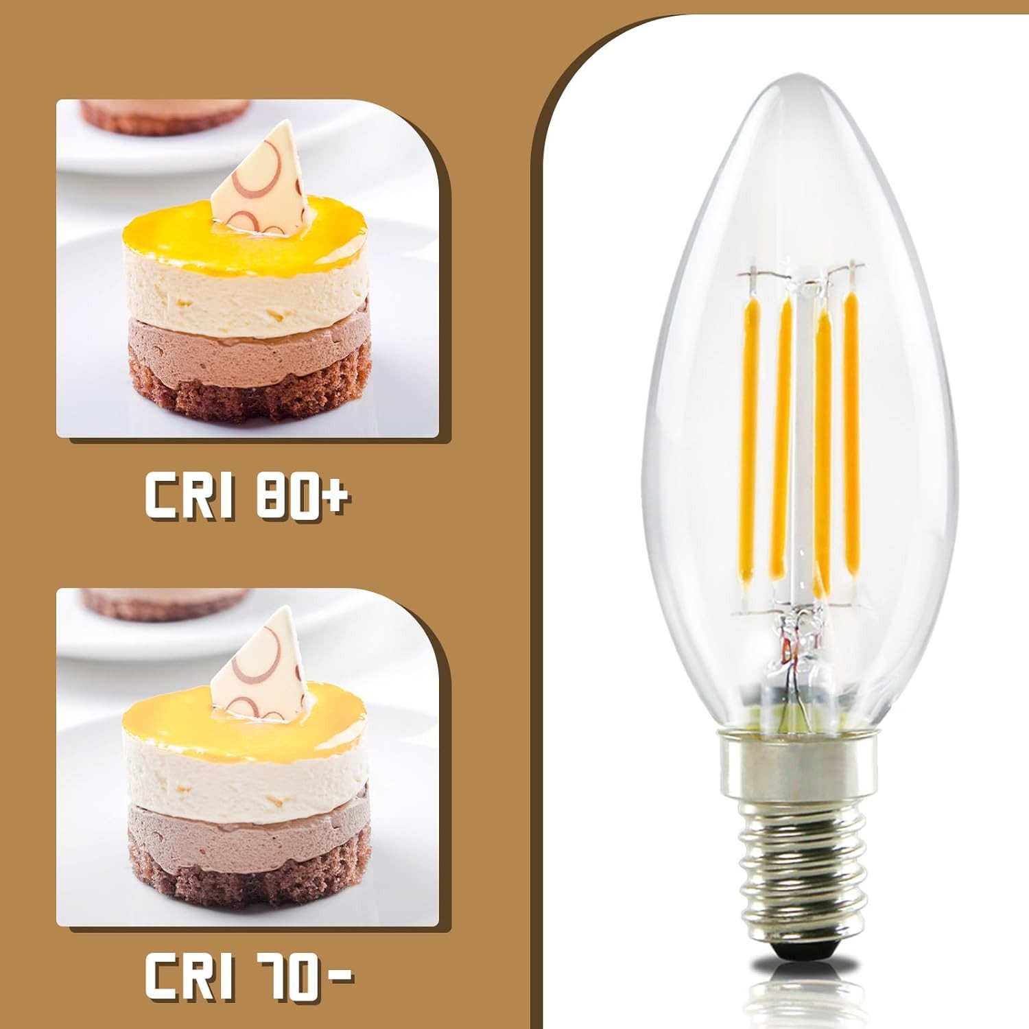 Klassinen kynttilänmuoto: Tämä korkealaatuisesta värittömästä lasista valmistettu E14-lamppu, jonka sisällä on kiiltävä hehkulanka, tuo mieleen Edisonin aikakauden vintage-charmin/tuo huoneeseesi ripauksen lämmintä valoa.
