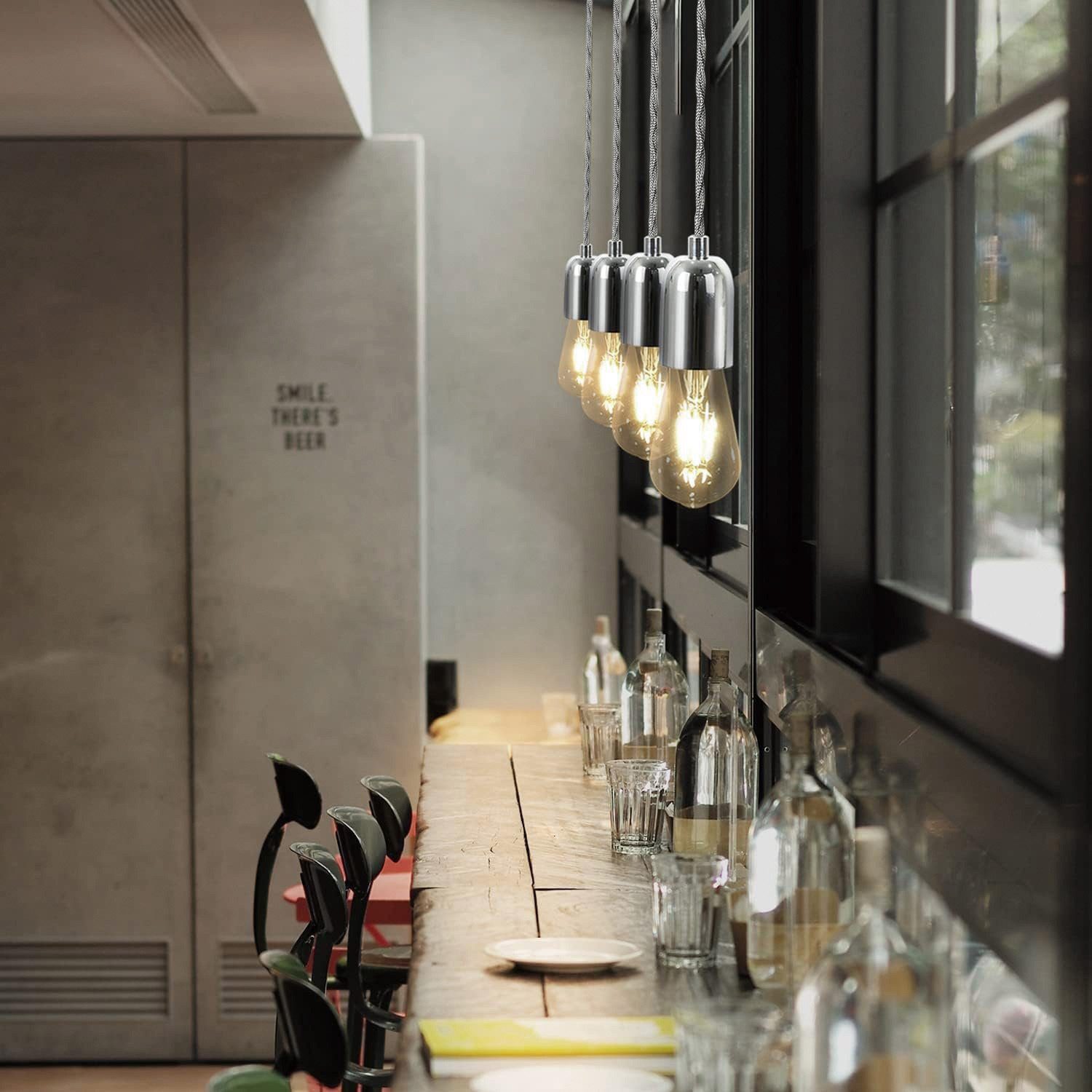 Vintage-riippuvalaisin: Jos pidät menneiden aikojen väreistä, älä missaa tätä vintage-lampunpidikettä. Kehys, joka muodostaa kontrastin koristeellisten renkaiden ja samanvärisen kattovalaisimen kanssa, sopii tekstiilipäällysteiseen johtoon. Tämä tekee Edison-polttimoista erityisen tehokkaita. (Polttimo ei sisälly toimitukseen)