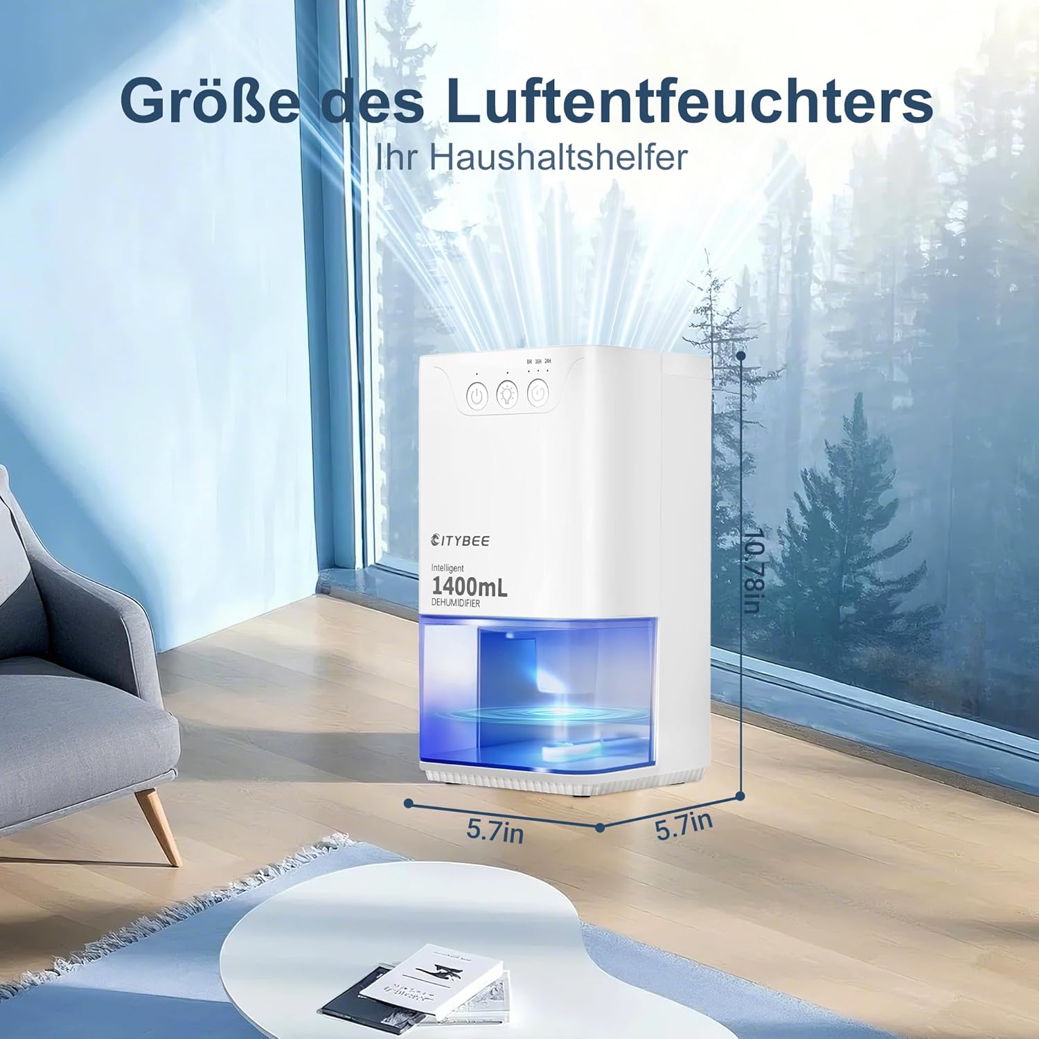 Tehokas kosteudenpoisto: Sähköinen kosteudenpoistaja poistaa kosteutta ilmasta tehokkaasti ja siinä on suuri 1400 ml:n vesisäiliö. Se on ihanteellinen makuuhuoneisiin, kellareihin tai kylpyhuoneisiin. Se vähentää hometta ja hajuja ilman, että säiliötä tarvitsee tyhjentää usein.