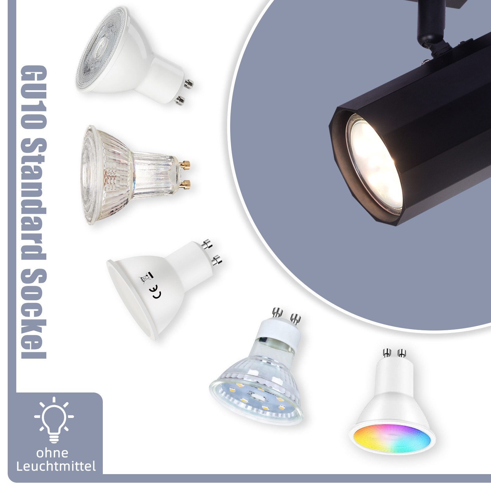 GU10-kanta: Yksilamppuinen kattospotti on varustettu tavallisella GU10-kannalla, joka sopii monenlaisille GU10-lampuille. Voit valita eri värilämpötiloista ja kirkkaustasoista saavuttaaksesi yksilöllisiä valaistustehosteita ja luodaksesi viihtyisän tai liiketoiminnallisen ilmapiirin.