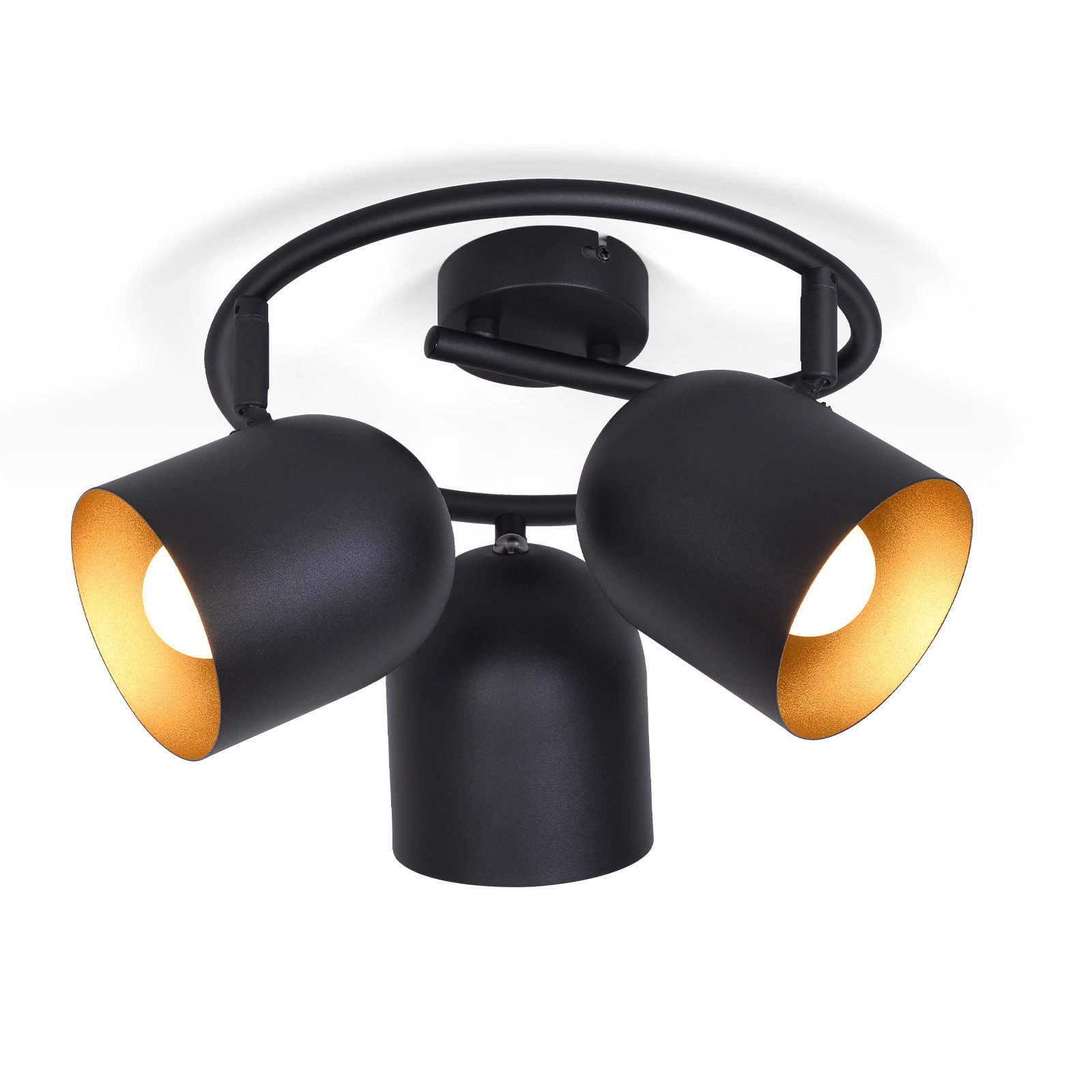 Muotoilu ja materiaalit: Tällä mustalla metallisella kohdevalaisimella on vaikuttava ulkonäkö, musta ulkopuolelta, mutta kirkas ja voimakkaan kullanvärinen sisältä. Voit täydentää olohuoneesi kokonaisuutta muilla malliston malleilla.