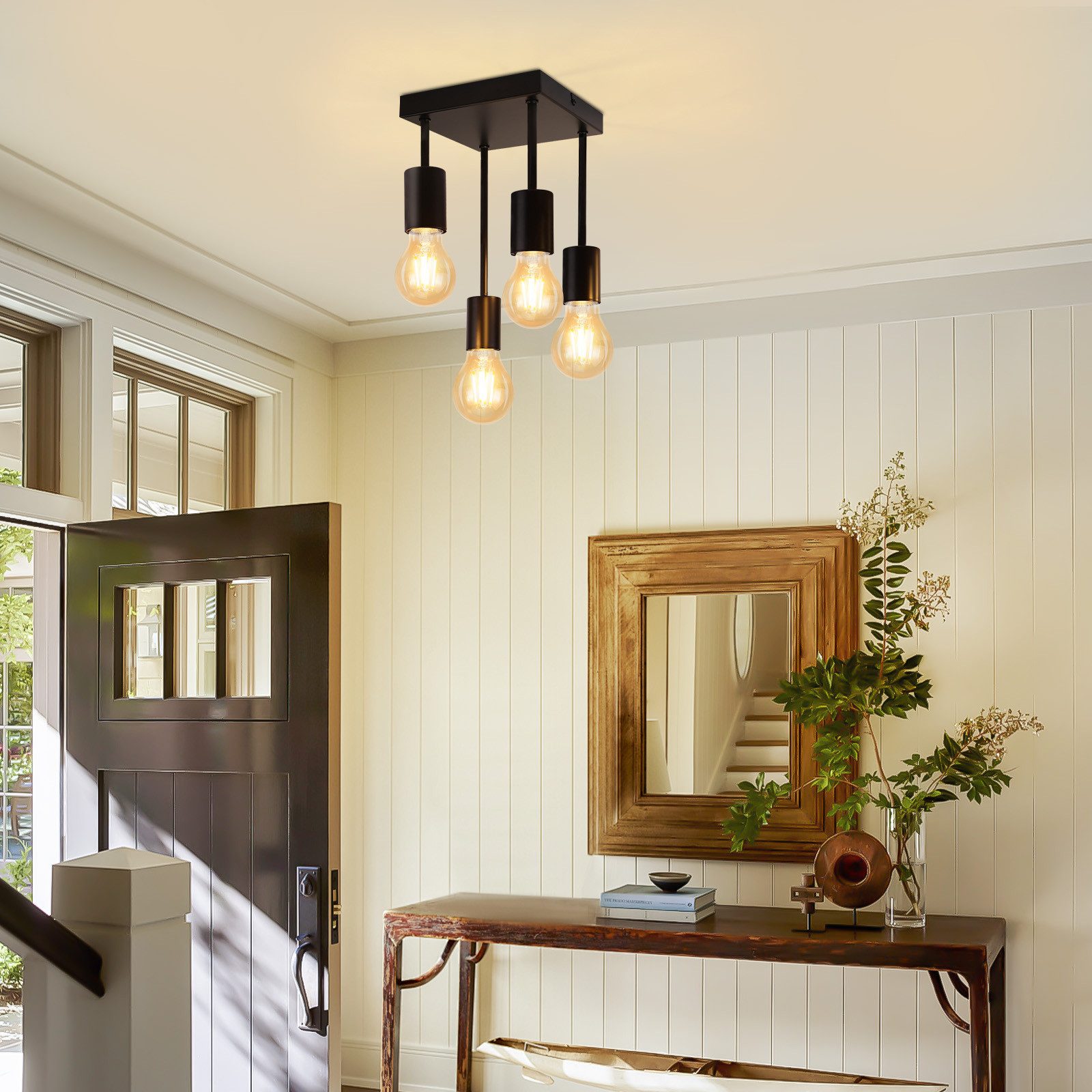 Joustava ja käytännöllinen: Tässä kattovalaisimessa on neljä eri pituutta, jotka eivät ainoastaan tarjoa visuaalisesti selkeitä linjoja, vaan myös laajentavat valaistusaluettasi. Musta metallikehys sopii täydellisesti mustaan kattokiinnikkeeseen. Sen suosio antiikkiväreissä on erityisen tehokasta yhdistettynä Edison-lamppuihin.
