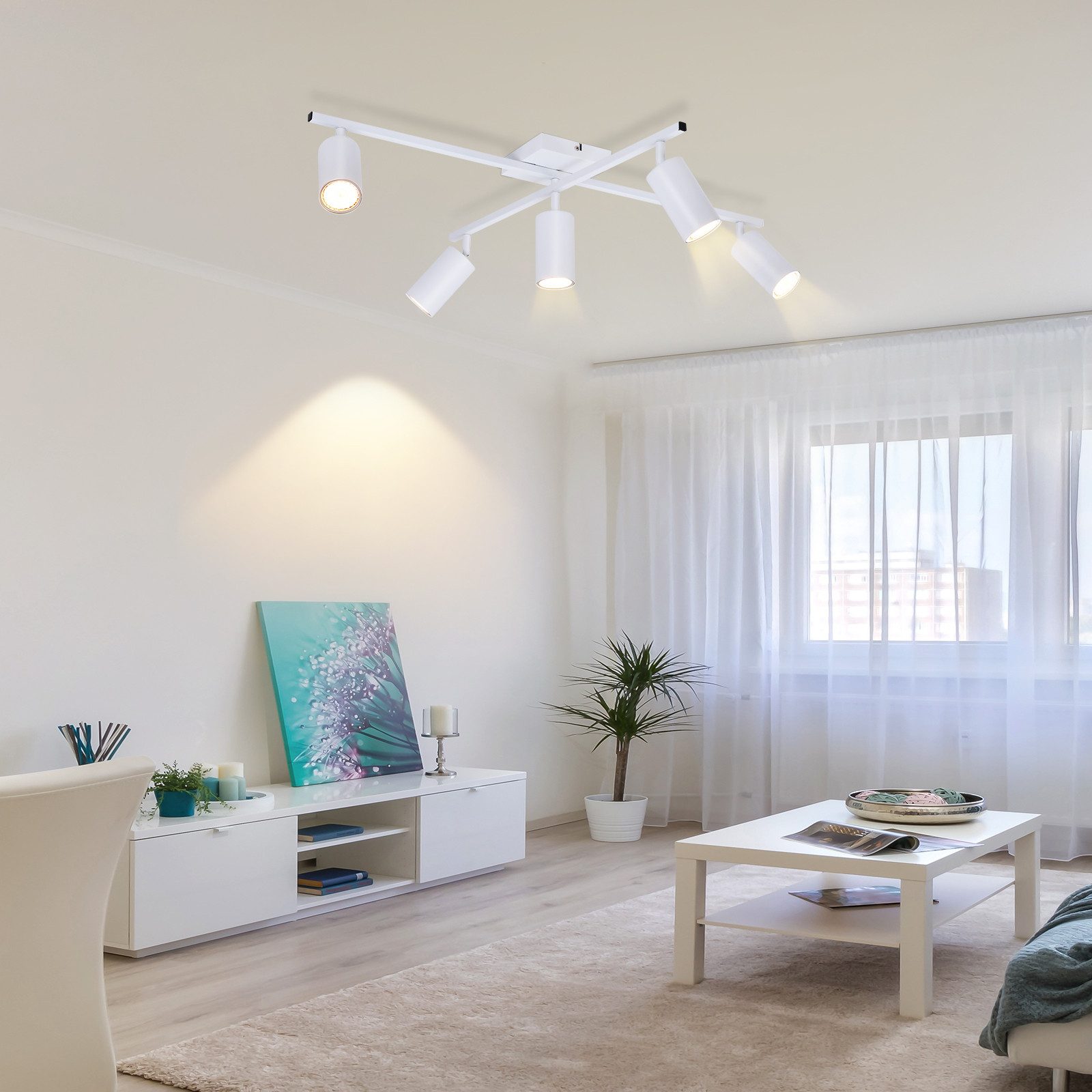 Moderni muotoilu: Tyylikkään valkoisen metallimuotoilunsa ansiosta tämä säädettävä LED-kattovalaisin on katseenvangitsija jopa kirkkaassa päivänvalossa. Kattovalaisin ei ole kuitenkaan vain visuaalisesti miellyttävä, vaan se tekee vaikutuksen myös monilla käyttömahdollisuuksillaan.