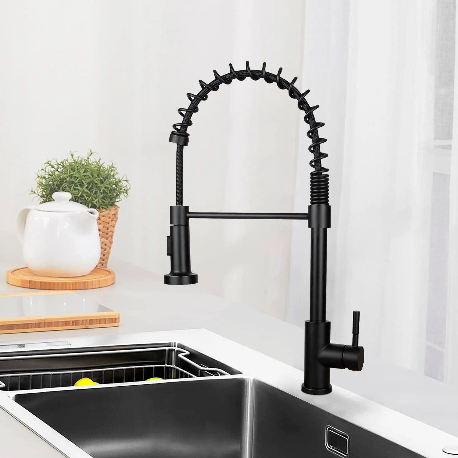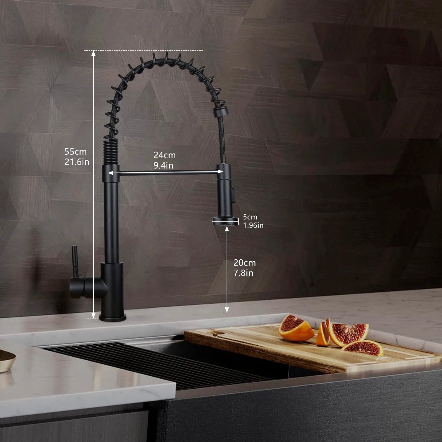 AINUTLAATUINEN MUOTOILU: Keittiöhanassa on korkea kaari ja jousi sekä kaksitoiminen ulosvedettävä suihkupää, jonka avulla voit valita joko ilmastetun virran tai tehokkaan suihkun tarpeidesi mukaan. Sopii kotitalouksien tiskialtaille tai graniittisille työtasoille.