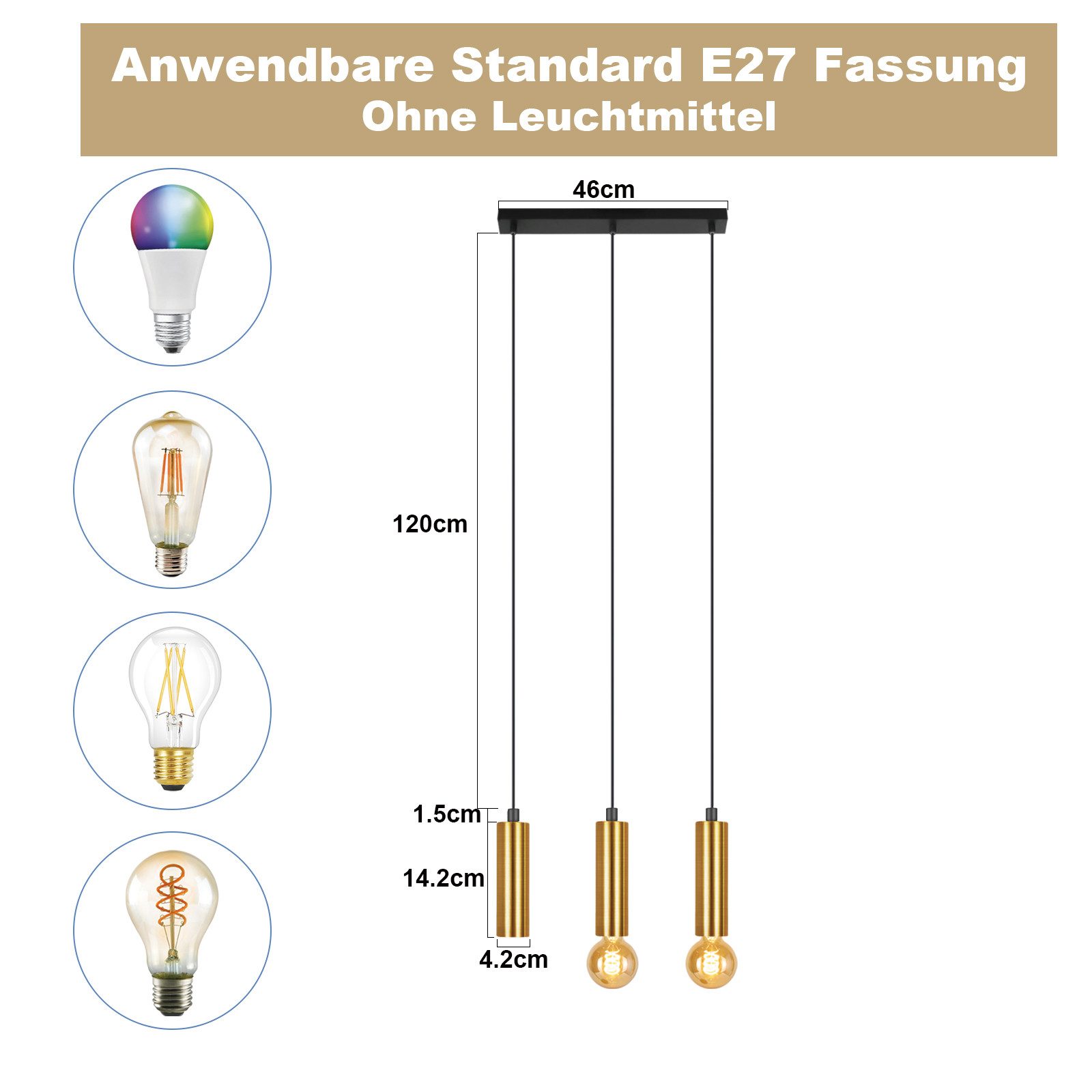 Standardi E27-kanta: Sisäänpäin riippuva ruokapöydän valaisin sopii kaikkiin E27-lamppuihin, kuten lämpimän valkoiseen, kylmän valkoiseen, RGB- ja säädettävään kirkkauteen. Voit valita energiansäästölamppuja tarpeidesi mukaan tai käyttää RGB-lamppuja tunnelman luomiseen. Huomaa: Teollisuustyylinen riippuvalaisimemme ei sisällä lamppuja. Ruokapöydän valaisimen maksimiteho on 25 W.