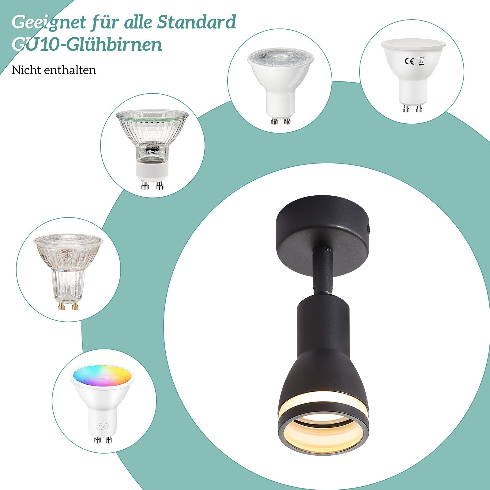 VAIHDETTAVAT LAMPPUT: Käytävävalaisin on yhteensopiva GU10-lamppujen kanssa, joiden teho on enintään 40 W. Tarpeidesi mukaan voit valita lämpimän valkoisen, kylmän valkoisen tai RGB GU10 -lamput. Huomaa, että lamput eivät sisälly toimitukseen.